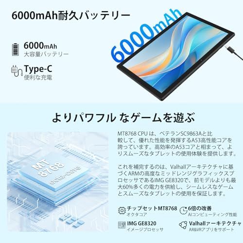 【6000mAhバッテリー&2.4/5GWi-Fi対応】6000mAhの大容量のバッテリーとAIインテリジェント電源管理として、長時間の映画・読書・ブラウジングを楽しむことができます。2.4G/5Gデュアル周波数