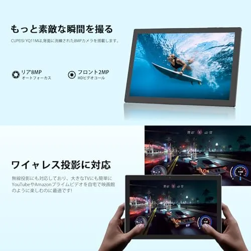 【MTK CPU&2.3GHz運行スピード】CUPEISI YQ11M タブレットは高性能MTK8768 2.3GHz 8コアCPUを採用し、処理性能が大幅に向上しサクサク使えます。4GB8GBのメモリを搭載されて、Webサイトの閲覧や動画の鑑賞などはもちろん、複数アプリ同時起動しても負荷の高いゲーム起動しても思う存分お楽しみいただけます。