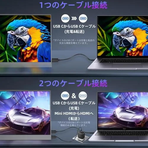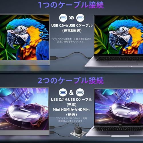 【プラグアンドプレイ】ドライバーのダウンロードは不要。USB-CケーブルまたはHDMIケーブル1本で接続するだけで使用できます。ノートパソコン、PC、Mac、Xbox、PS3 / PS4 / PS5、Switchなどに最適なポータブルモニターで、いつでもどこでも仕事やゲームを楽しめます。