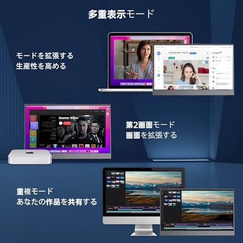 【複数の表示モード】 [拡張パソコン モニター/セカンドディスプレイ /ポートレートモード]、画面を複製して他の人と共有したり、携帯電話やゲーム機の画面を拡大したり、画面を拡張して同時にマルチタスクを実行したり、いつでもどこでも画面を拡張して作業効率を向上させ、生活の質を向上させます。
