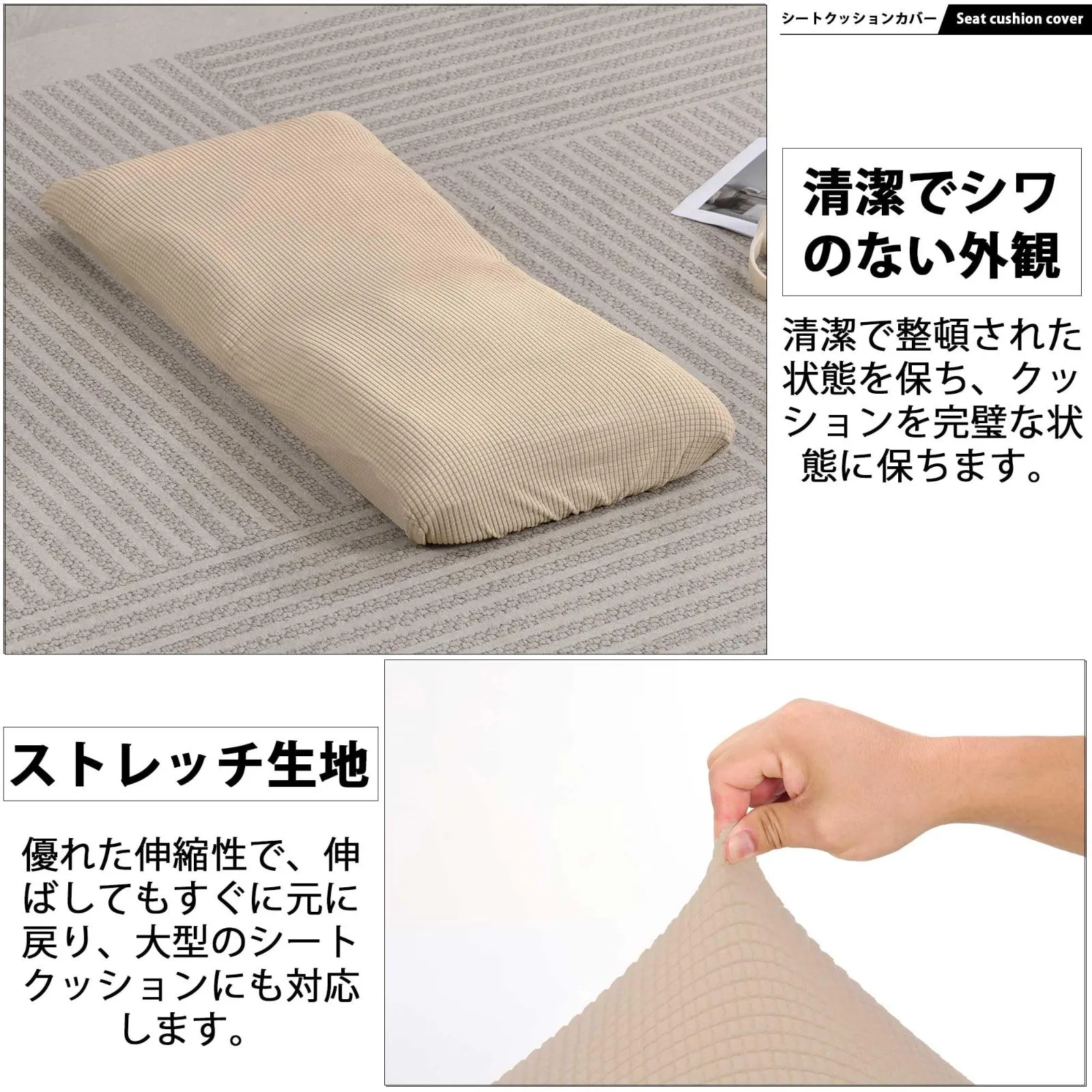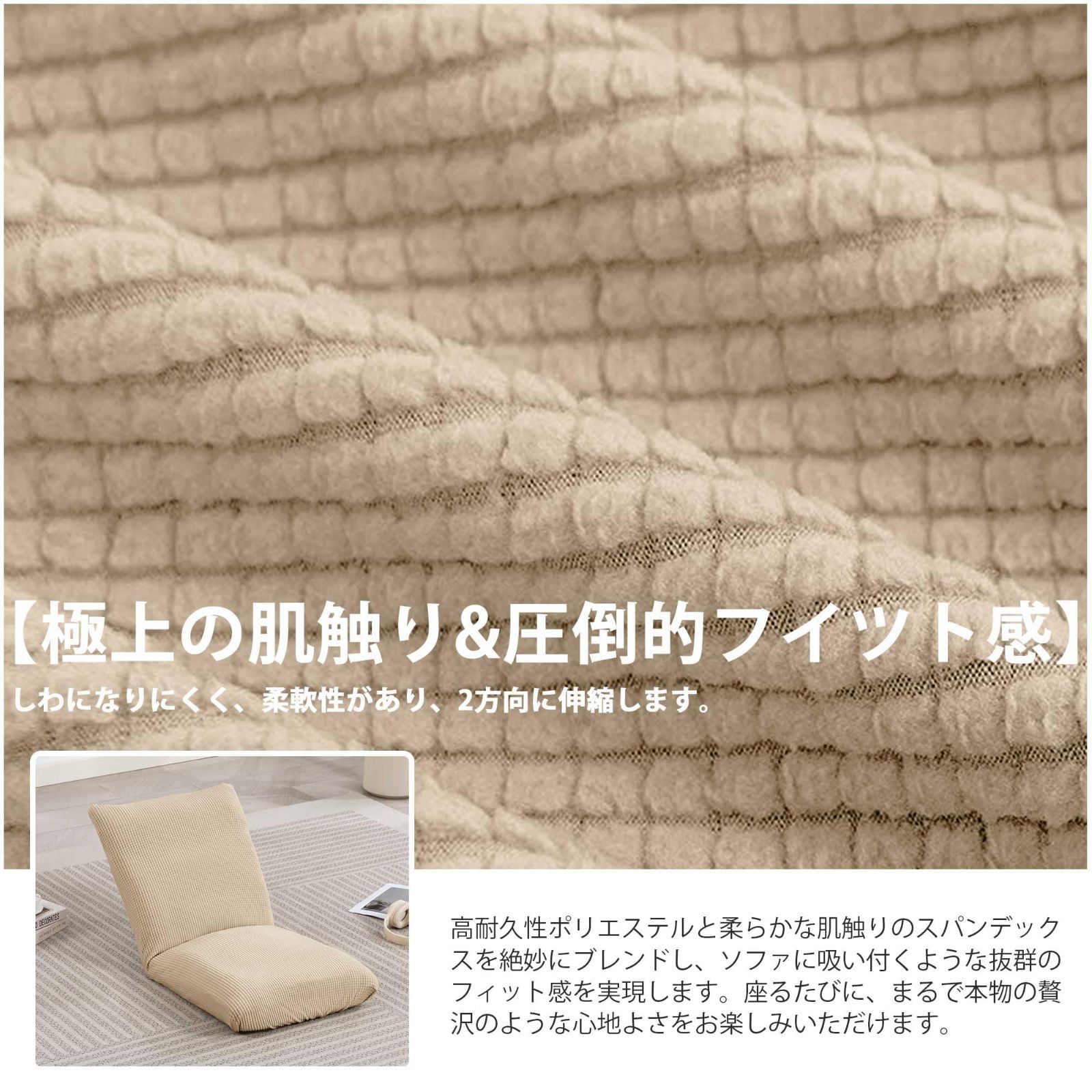 【伸縮性と耐久性の両立】適度な弾力性で座椅子に自然にフィット。しっかりとした織り構造が伸びすぎや型崩れを防ぎ、繰り返しの使用後も美しいシルエットをキープします。
