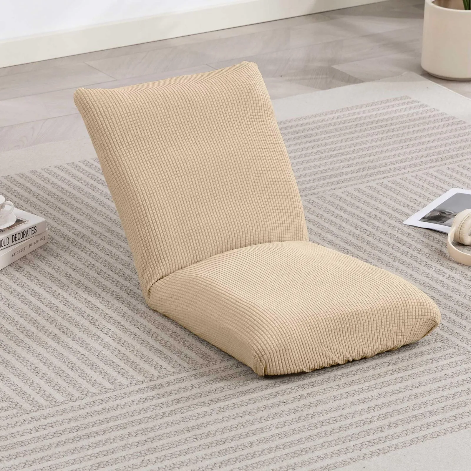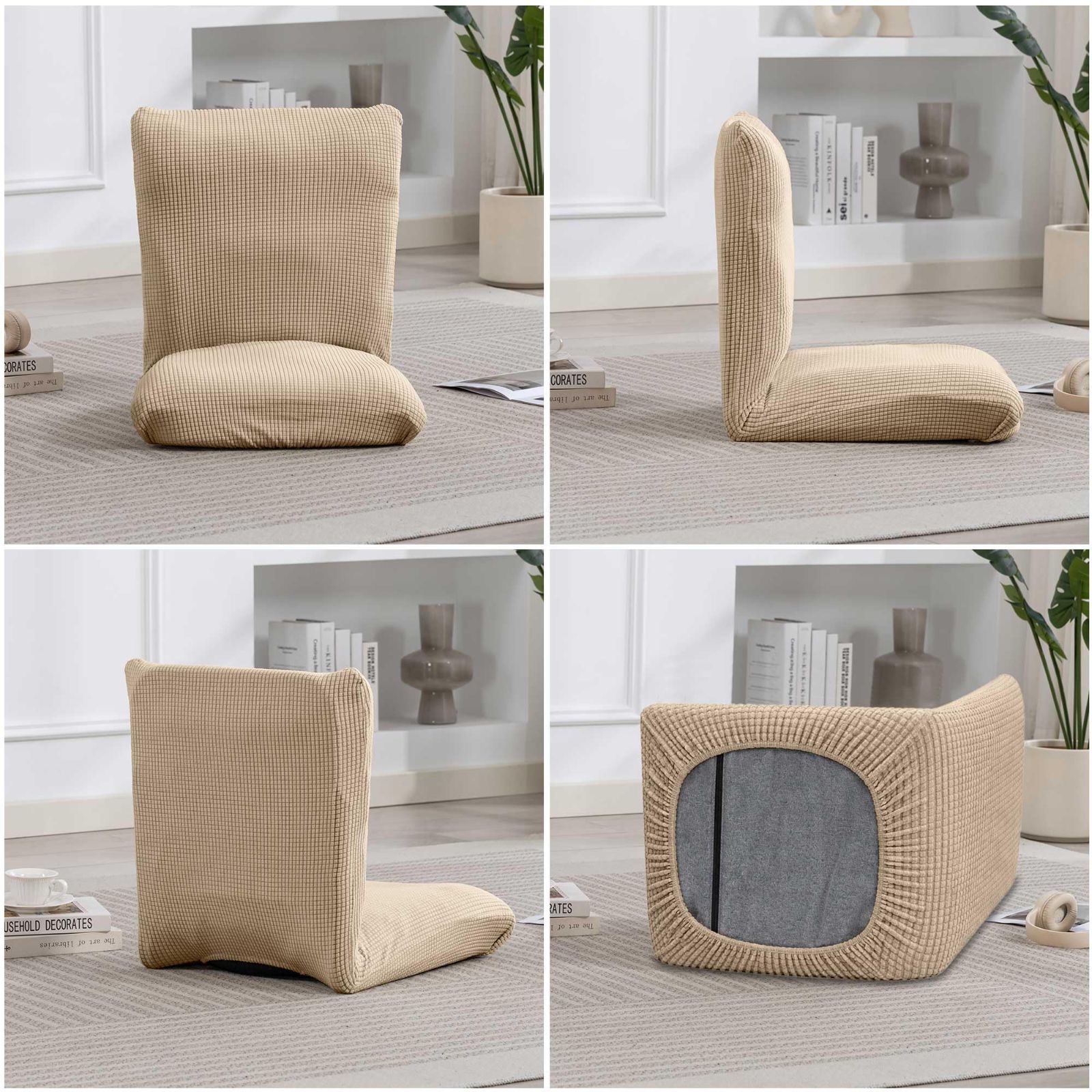 TIANSHU 座椅子カバー 1枚 ハイバック イスカバー 肘なし 伸縮素材 ストレッチ 大きめ リクライニングフロアチェアカバー 無地 洗濯可 取り外し簡単 替えカバー 和室インテリア (M,ライトブラウン)