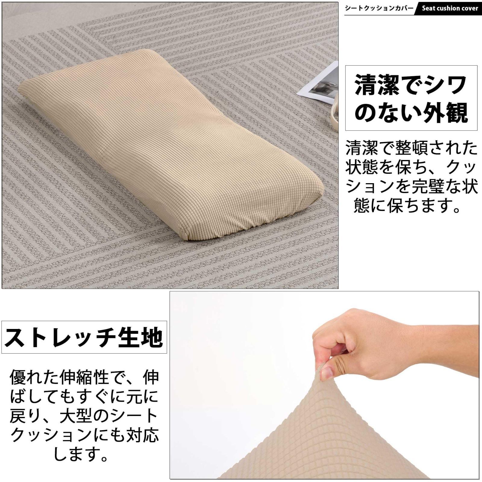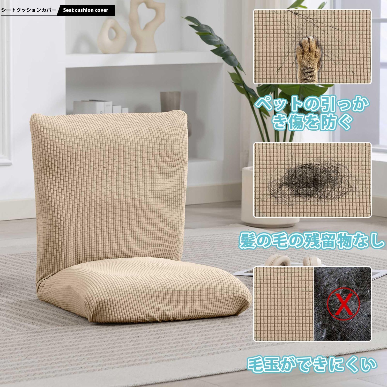 【手軽に椅子をリニューアル】傷んだ座椅子や雰囲気を変えたい椅子を、手軽に生まれ変わらせます。伸縮性のあるゴム入り縁がぴったりとフィットし、着脱はワンタッチで簡単。ずれにくい設計で、美しい状態をキープします。さらに、頑丈な生地が日常の傷や汚れから椅子を守り、長持ちする機能性も備えています。