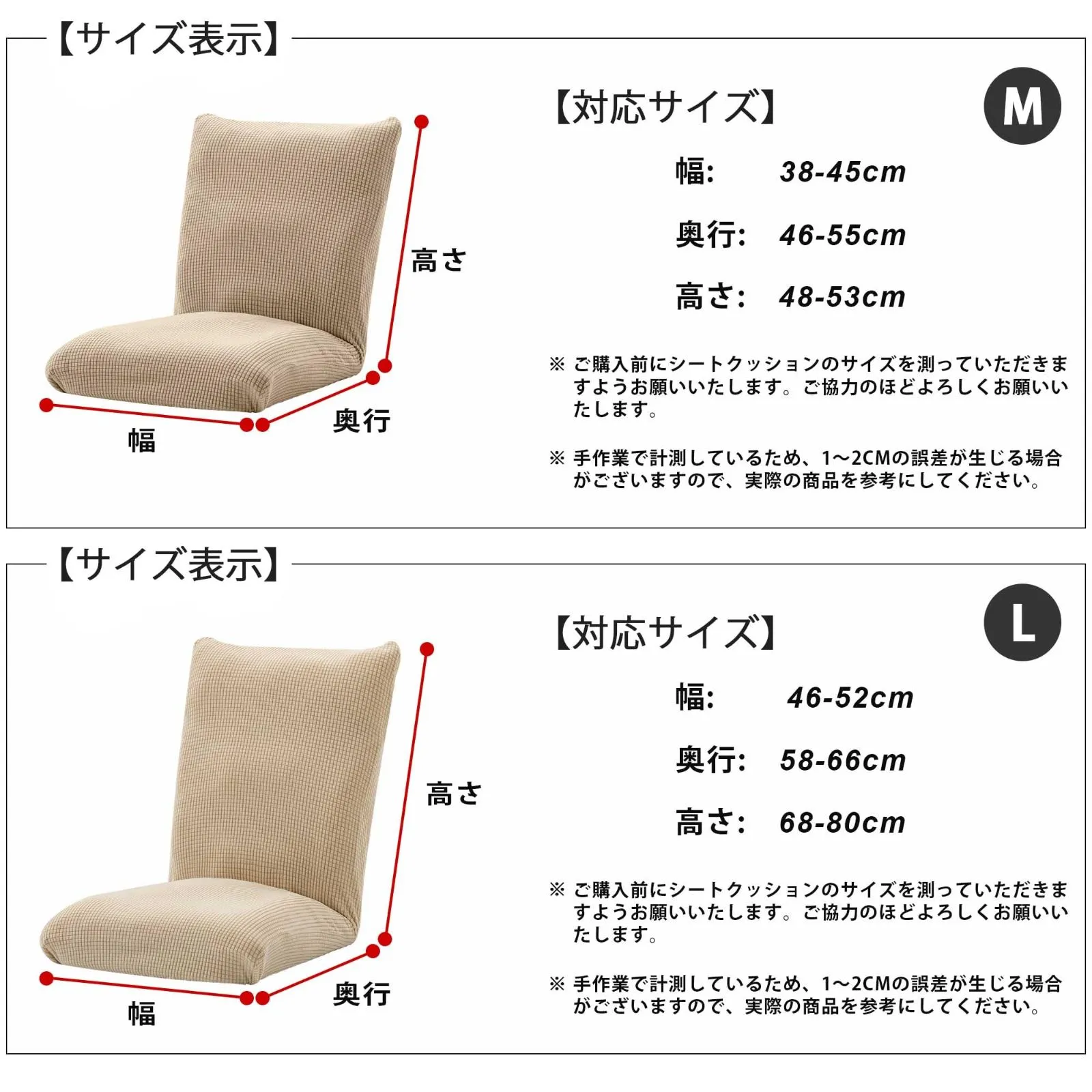 【サイズについて】・Mサイズ 座面:約 幅38〜45cm × 奥行き46〜55cm 背もたれ高さ:約 48〜53cm