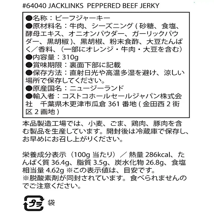 【検索用キーワード】 コストコ ジャックリンクス ビーフジャーキー ペッパー 大容量 おつまみ 食品 まとめ売り