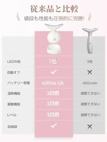 【7色LEDEMS・肌も心も輝かせる】忙しい毎日でも、手軽に使える多機能美顔器です。7種類LED3段EMS3段振動3段温感を組み合わせ、サロンのようなケアを自宅でも叶えます。毎日のケアに取り入れやすい設計です。朝の準備前や夜のリラックスタイムにもぴったり。