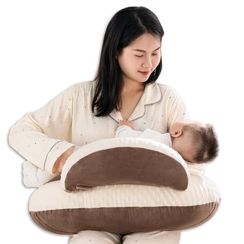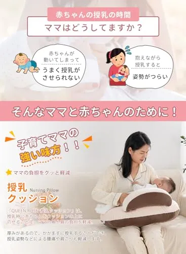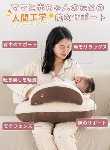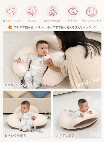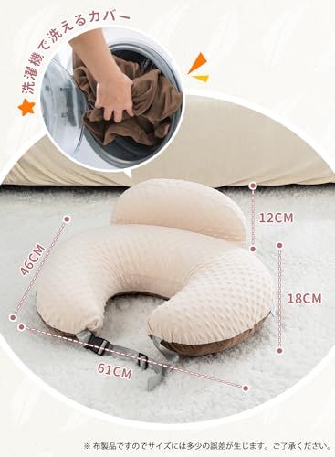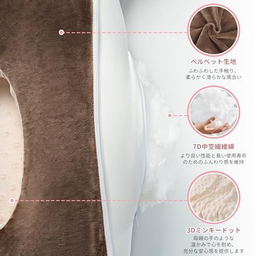QUEEN ROSE 授乳クッション 授乳枕 マタニティクッション 抱きまくら兼用 調節可能なストラップ付き リバーシブル 丸ごと洗える コットン 多機能 U字型 かわいい ブラウンshun