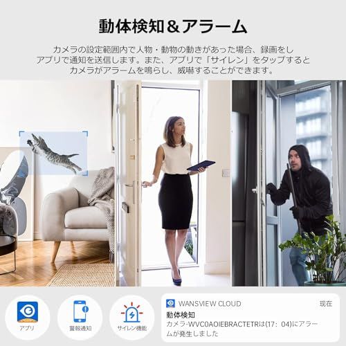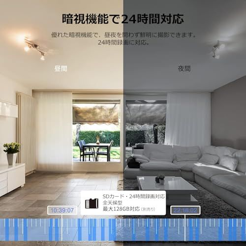 【24時間録画遠隔操作】2.4ghz帯Wi-Fi接続でアプリから遠隔操作可能なネットワークカメラです。microSDカード(別売り)を使用して24時間録画が可能で、8GB?128GBまで対応。録画は自動的に上書きされるため、保存容量の心配はありません。また、専用アプリで録画映像を閲覧・ダウンロードすることもできます。大切な思い出の保存にも利用できる。