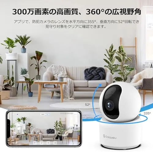 Galayou G2【Alexa対応認定】防犯カメラ 300万画素 2k・自動追尾 24時間録画 ネットワークカメラ 室内ペット留守番カメラ 防犯/監視/赤ちゃん/子ども/家族/介護/見守りカメラ 2.4GHzWi-Fi 2k 高画素360度 自動追跡shun