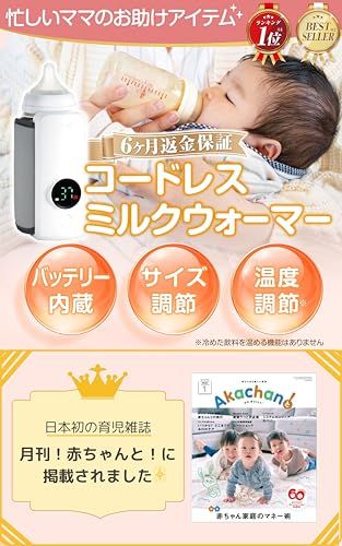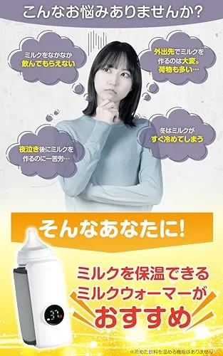【5V/2A】の充電器で充電を行ってください。充電器が異なる場合、充電できない場合がございます。 \ママの味方ミルクを保温できるコードレスミルクウォーマー/ こんなお悩みありませんか? ミルクをなかなか飲んでもらえない 外出先でミルクを作るのが大変、、荷物も多くなってしまう 夜泣き後にミルクを作るのに一苦労 冬はミルクがすぐに冷めてしまう