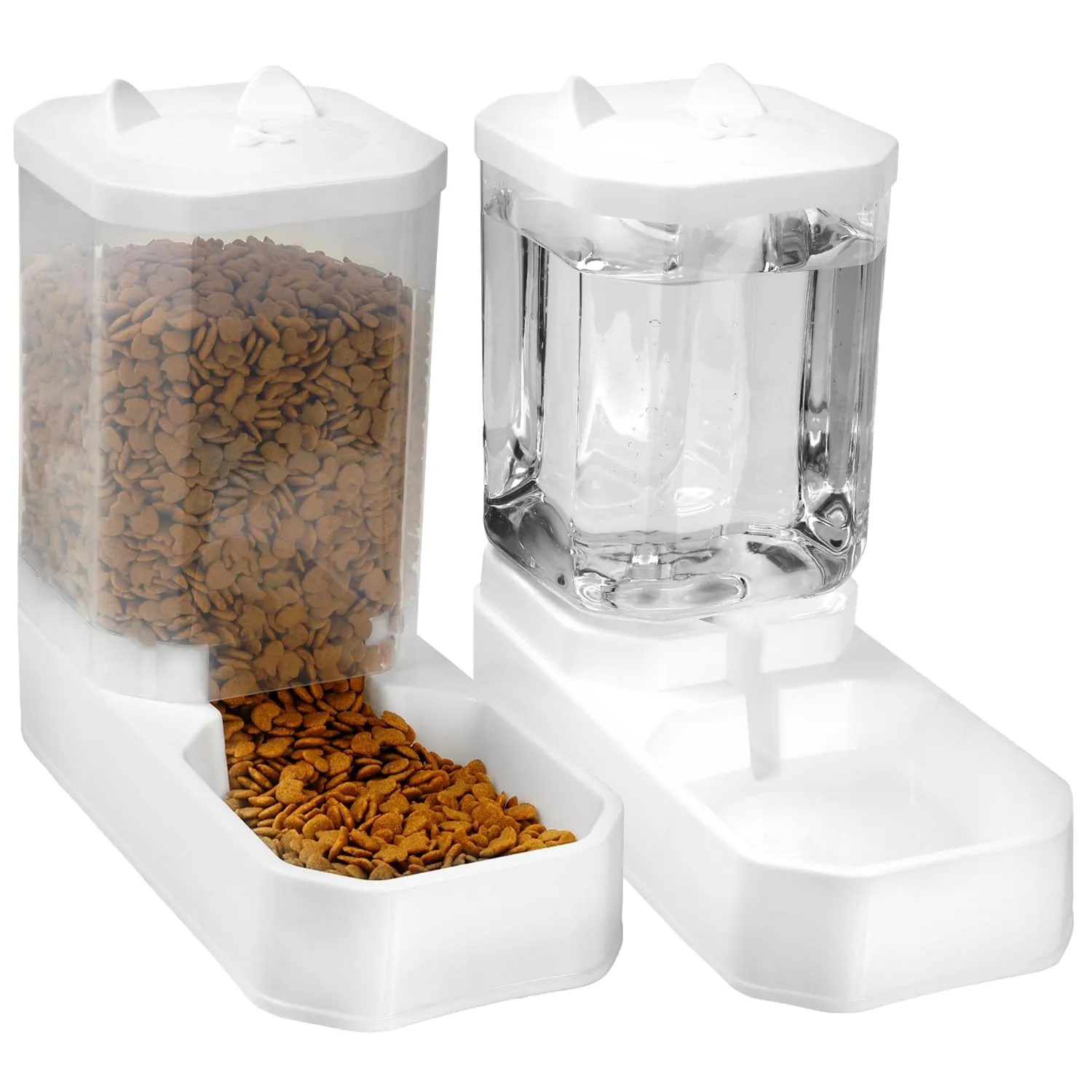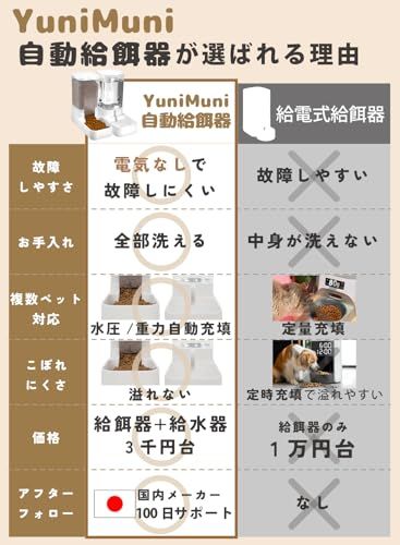 【全部洗える】Yuni Muni 自動給餌器 猫 自動給水器 セット 【衛生的 透明 大容量 猫犬用 小動物用 犬】ペット 用品 (白) (餌1.5kg 水3.3L)shun