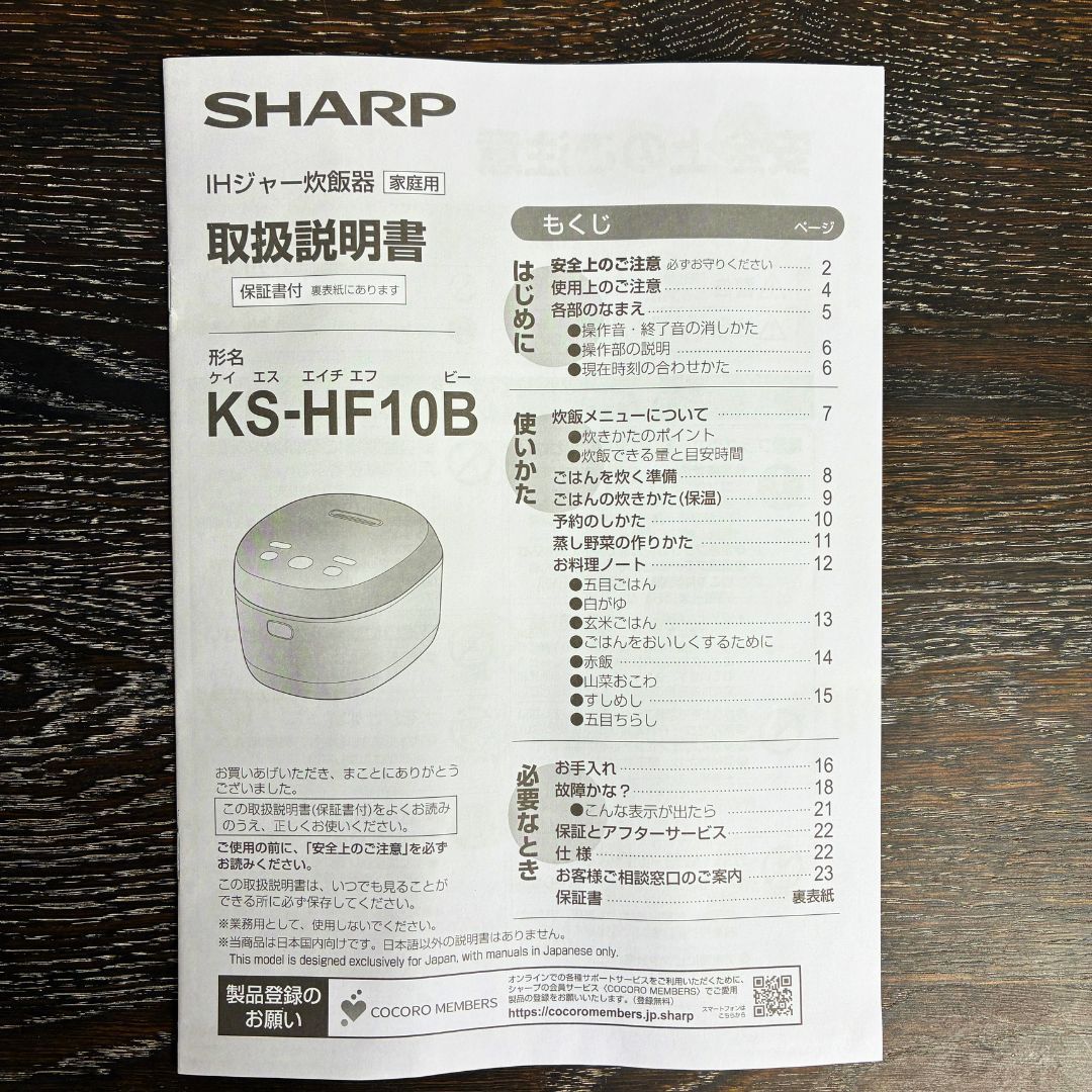 【新品・未使用】【2024年製】SHARP シャープ 炊飯器 5.5合 PLAINLY KS-HF10B-B