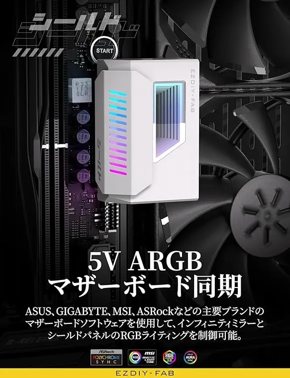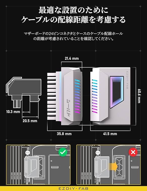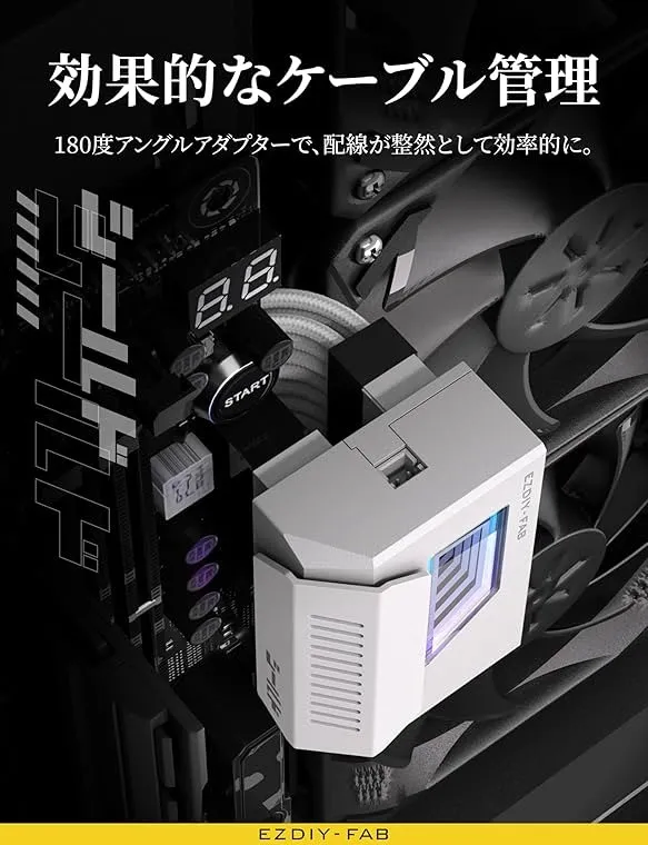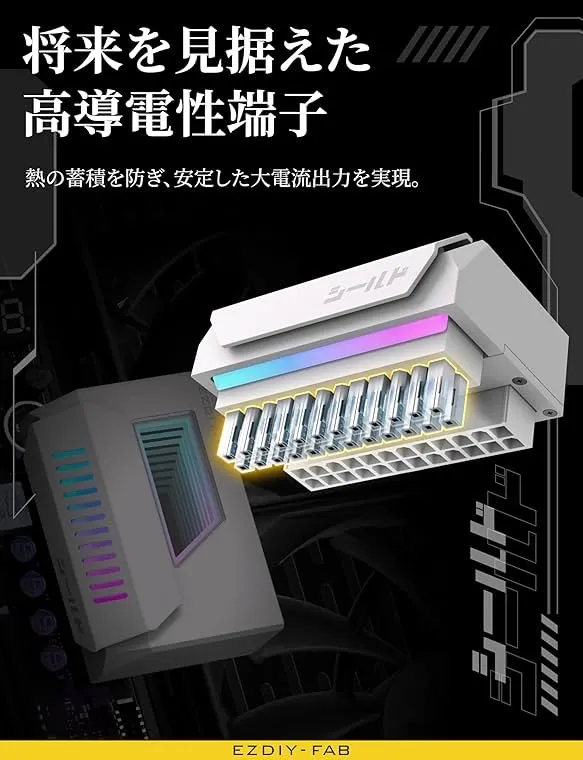 EZDIY-FAB シールド シリーズ ATX 24ピン180度電源コネクタ 24ピンアングル アダプター インフィニティ ミラー ARGB ライト、ATX 電源コネクタ、ATX3.1仕様規格に準拠 、5V 3ピン ARGB 同期メスからオス 白 - 1パック