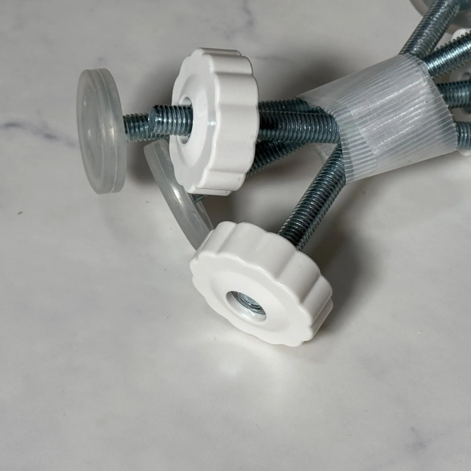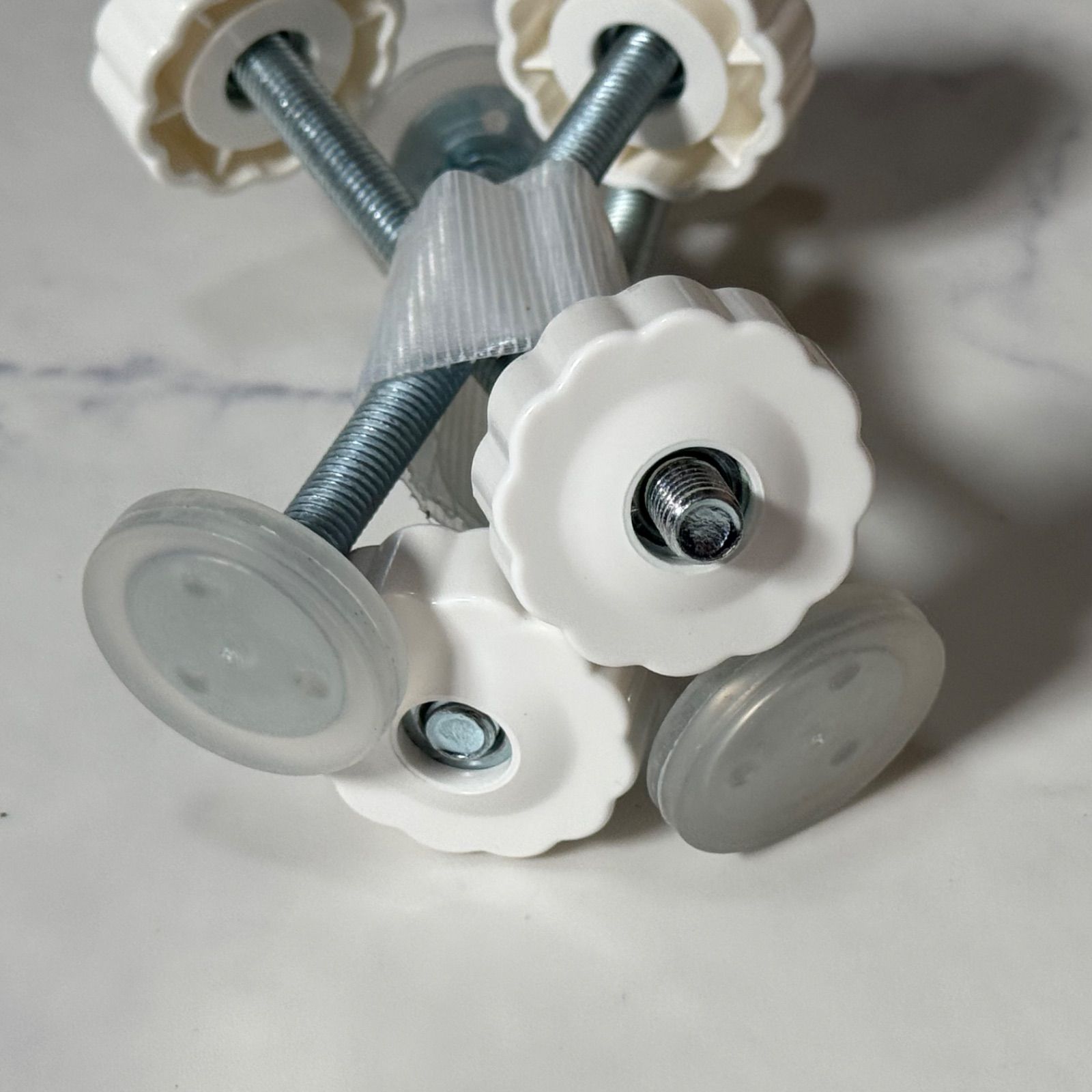 【商品説明】 ご覧いただきありがとうございます。 突っ張り式(圧力マウント式)のベビーゲートやペットゲートを取り付けるための、調整可能なボルトとノブのセットです。 4本セット(1台分)です。 • ブランド: vmaisi(ブマイシ) • 内容: ボルト(ネジ)、ノブ(白いプラスチック製)、壁受けパーツ(ボルト先端の透明なパーツ)のセット × 4本 • 仕様: ラベル記載によると「ミリメートル」となっており、一般的な突っ張り式ゲートのボルト径は約8mmです。 • 用途: • 既存のゲートのボルトが破損、紛失した際のスペア(予備)として。 • 別の場所に設置し直す際のパーツ交換に。 ラベルに「vmaisi」と記載がありますが、多くの突っ張り式ゲート(直径8mmのボルトに対応するもの)で使用可能です。