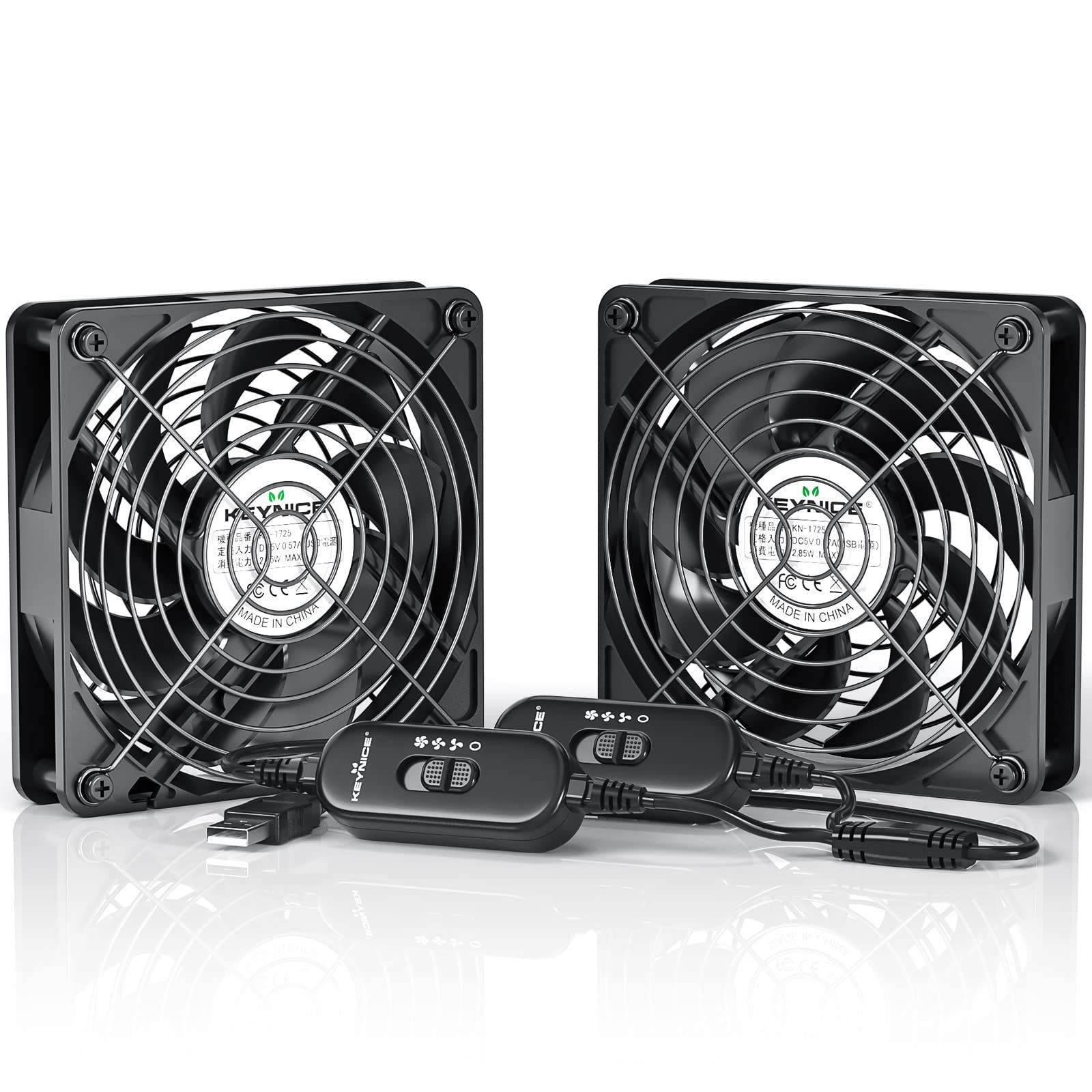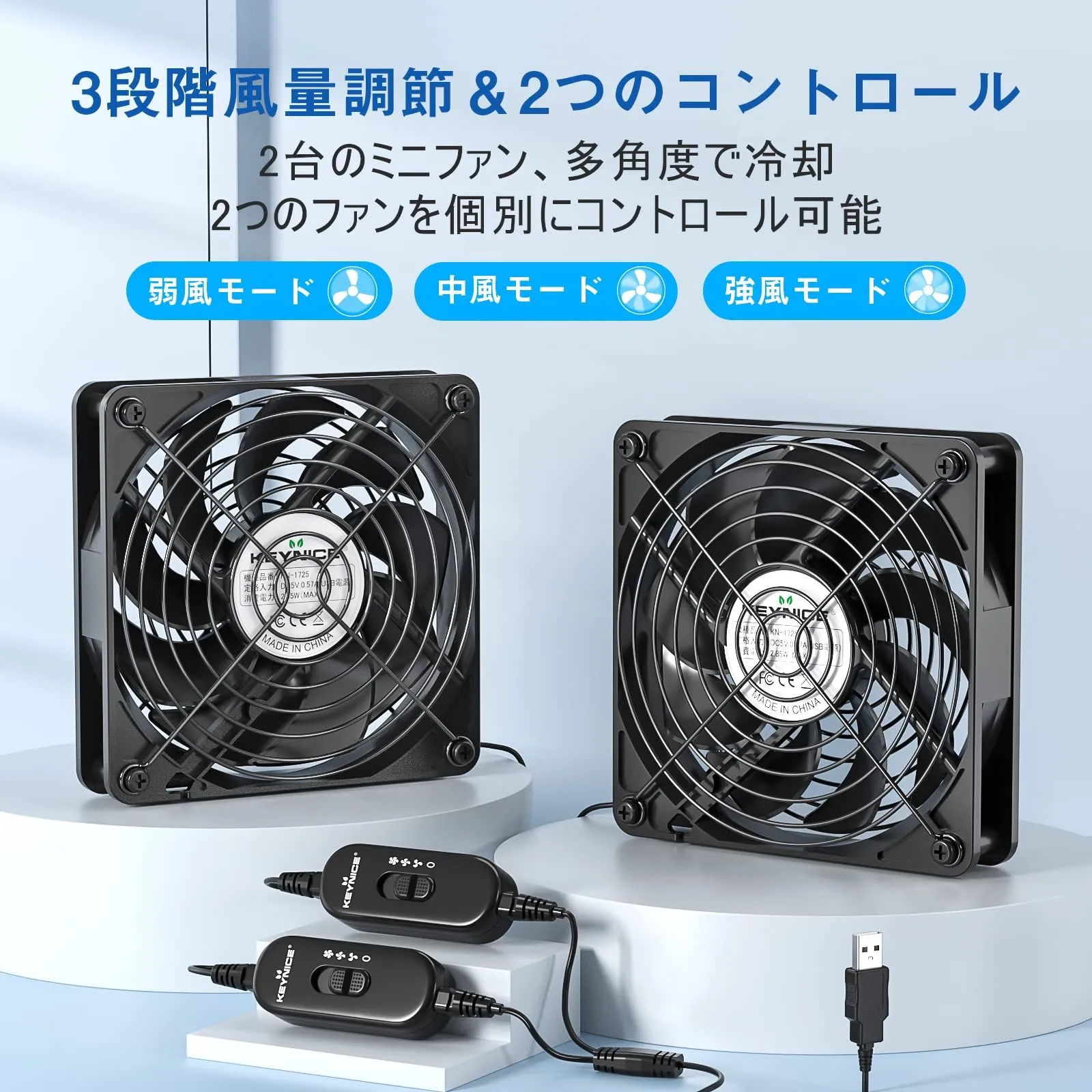 KEYNICE USB 冷却ファン 12cm 2個セット 独立スイッチ搭載 静音 3段階風量調節 強力 2000RPM 扇風機 ミニファン PC 冷却 パソコン ルーター PS4 PS5 ゲーム機 外付けHDD 換気 冷却クーラー 省エネKN-1725S