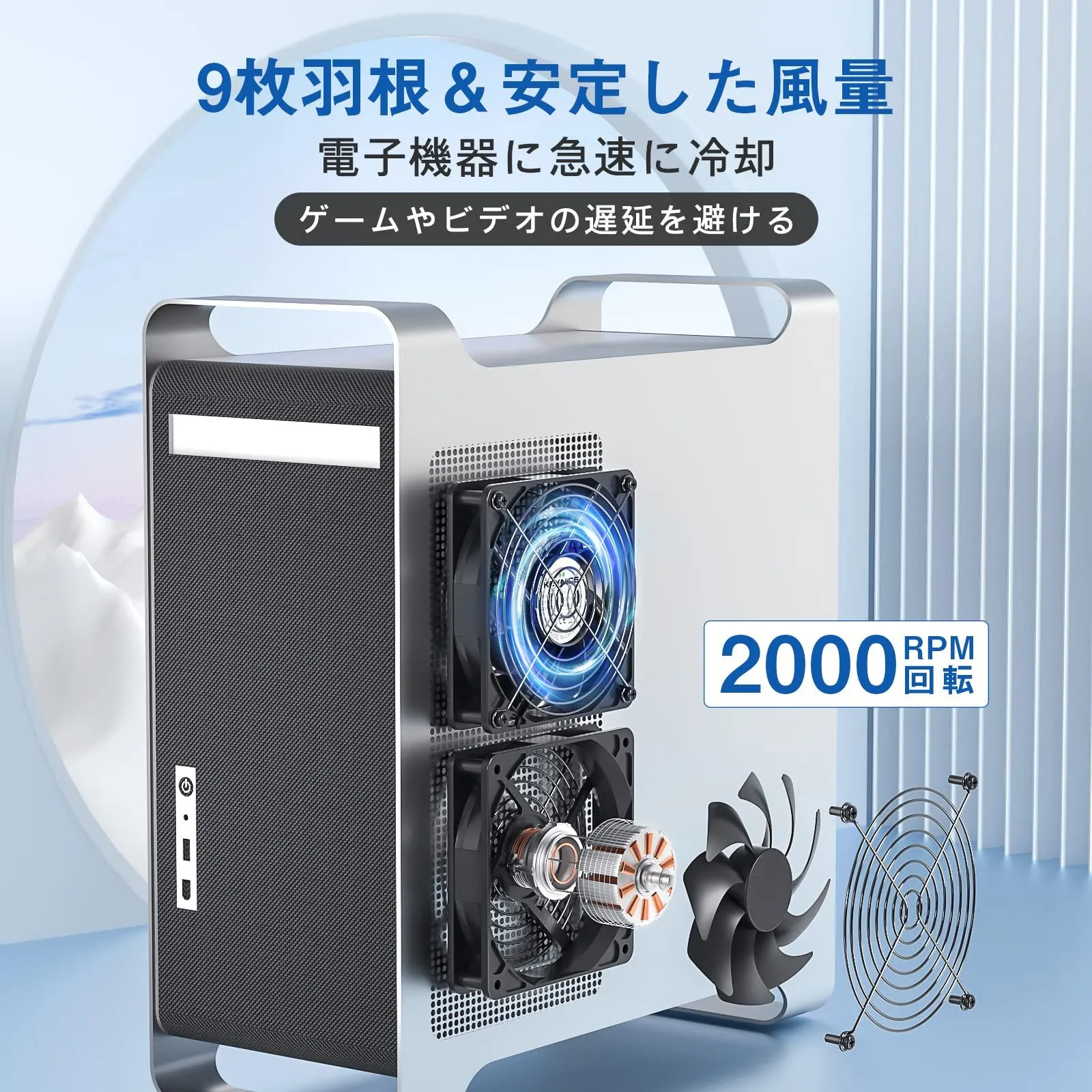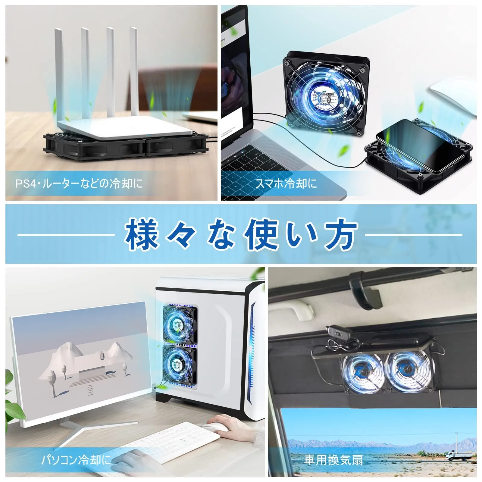 【多用途に活躍・熱暴走対策】 PC、ノートパソコンはもちろん、ルーター、HDDレコーダー、AV機器、PS4/PS5/Switchなどのゲーム機、プロジェクターの冷却に最適。さらに、水槽の換気や車中泊での空気循環、DIYの換気扇など、コンパクト設計を活かして多様なシーンで活躍します。