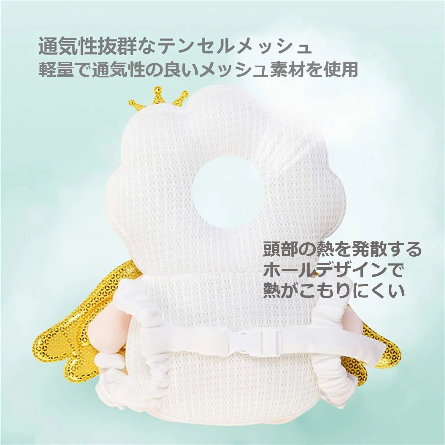 可愛い天使型 ごっつん防止 リュック 転倒防止 軽減 クッション 機能性 後頭部 保護 衝撃緩和 つかまり立ち よちよち歩き 出産祝い プレゼント メッシュ素材 保護枕 グリーン