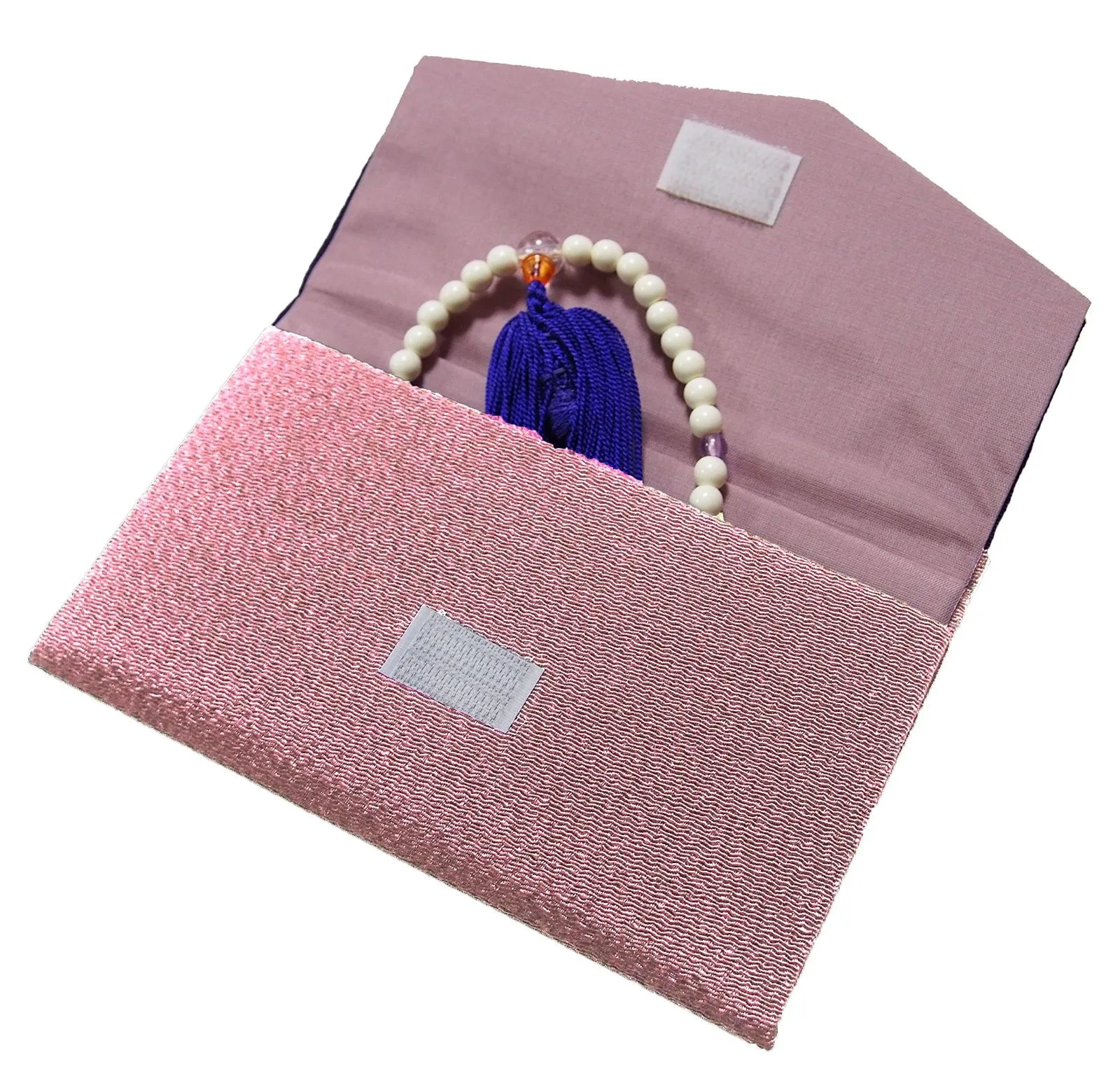 永観 日本製 二重 ちりめん 数珠袋 桜色 E-710