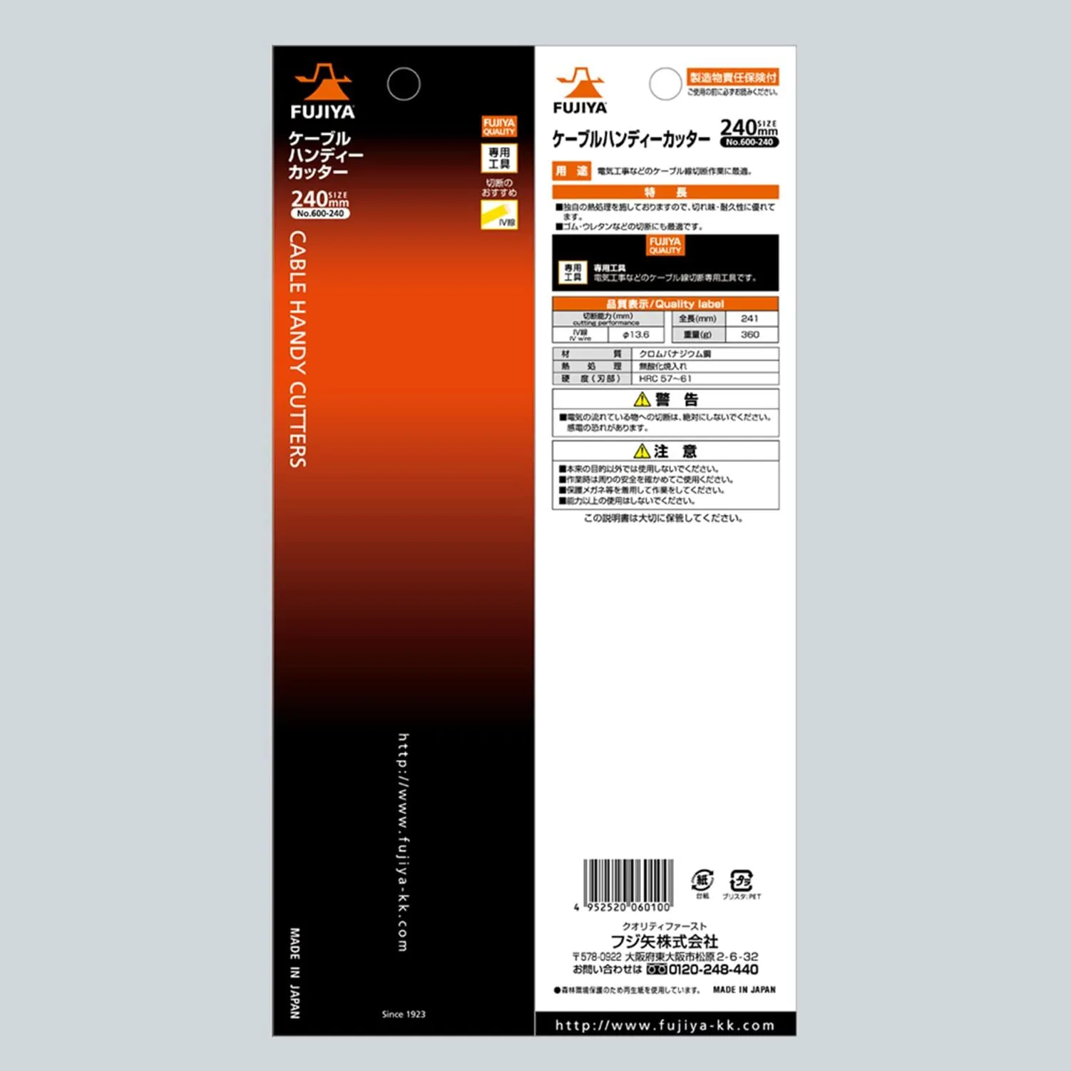 フジ矢(Fujiya) ケーブルハンディカッター 240mm 600-240