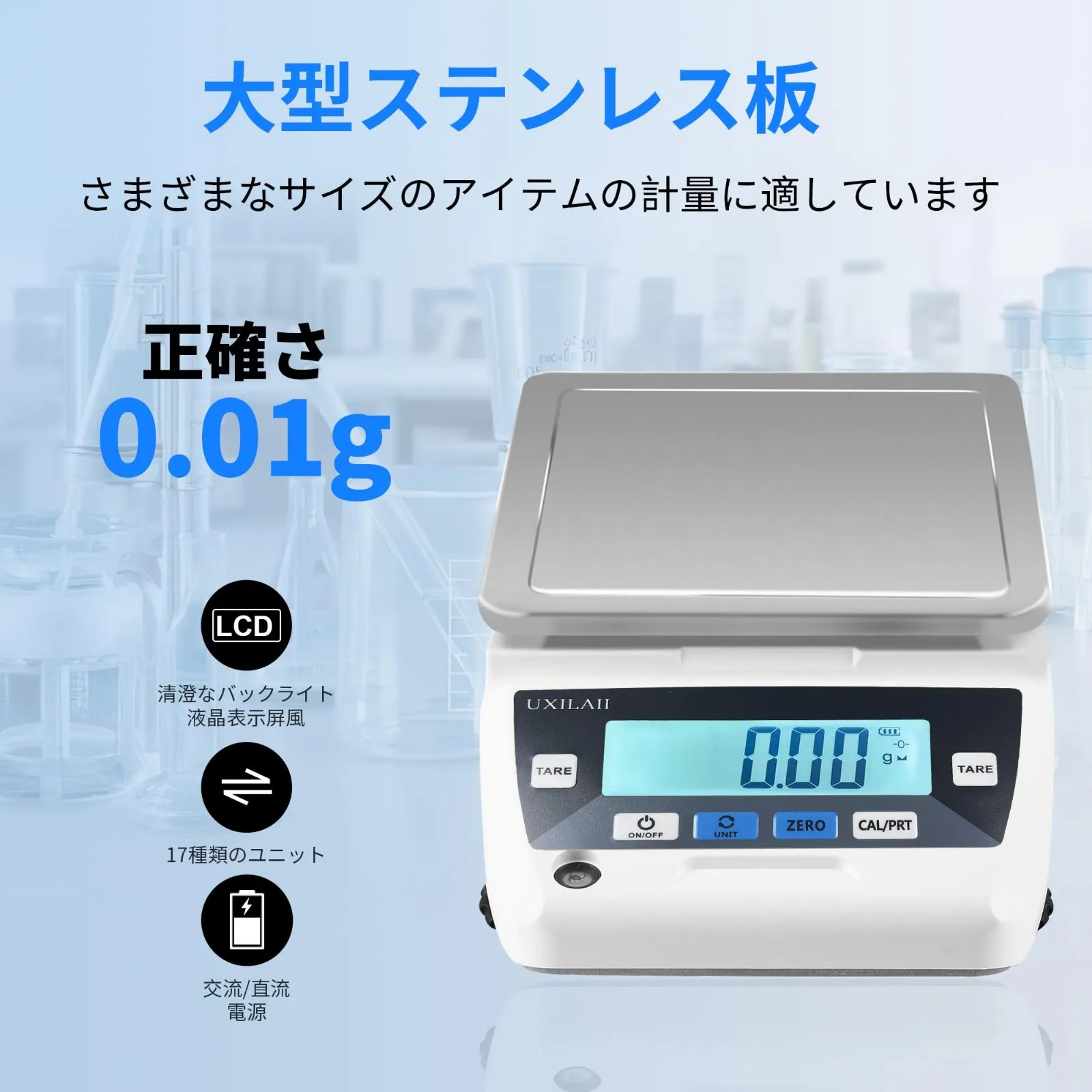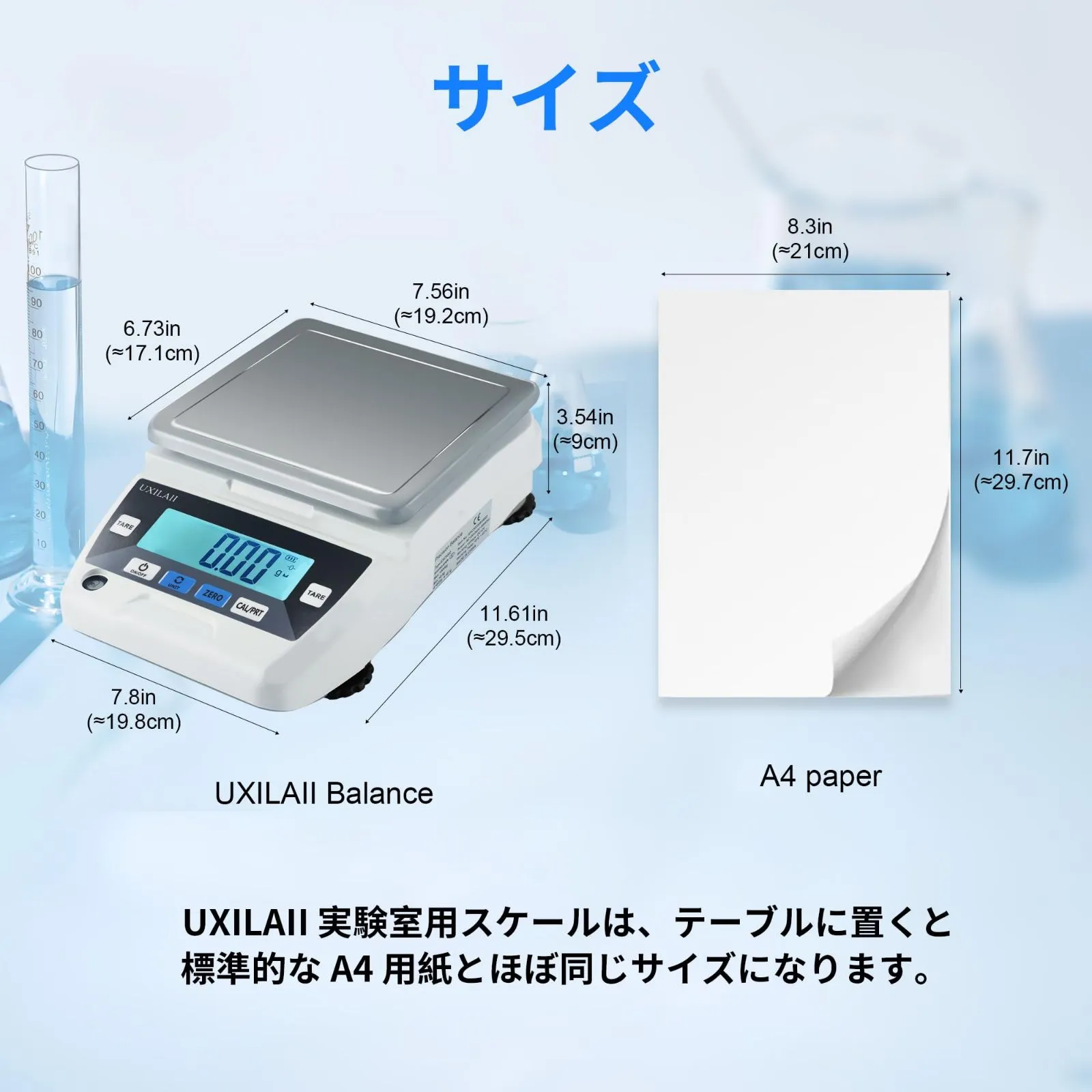 多機能 - 大きなLCDディスプレイを備えたラボスケールは、数秒で明確で正確な結果を得ることができます. 単位は、「UNIT」ボタンを押すだけで、g、kg、ct、oz、ozt、lb、dwt、%、tol、mm から変換できます。 さまざまなニーズを満たすことができる視覚化機能。