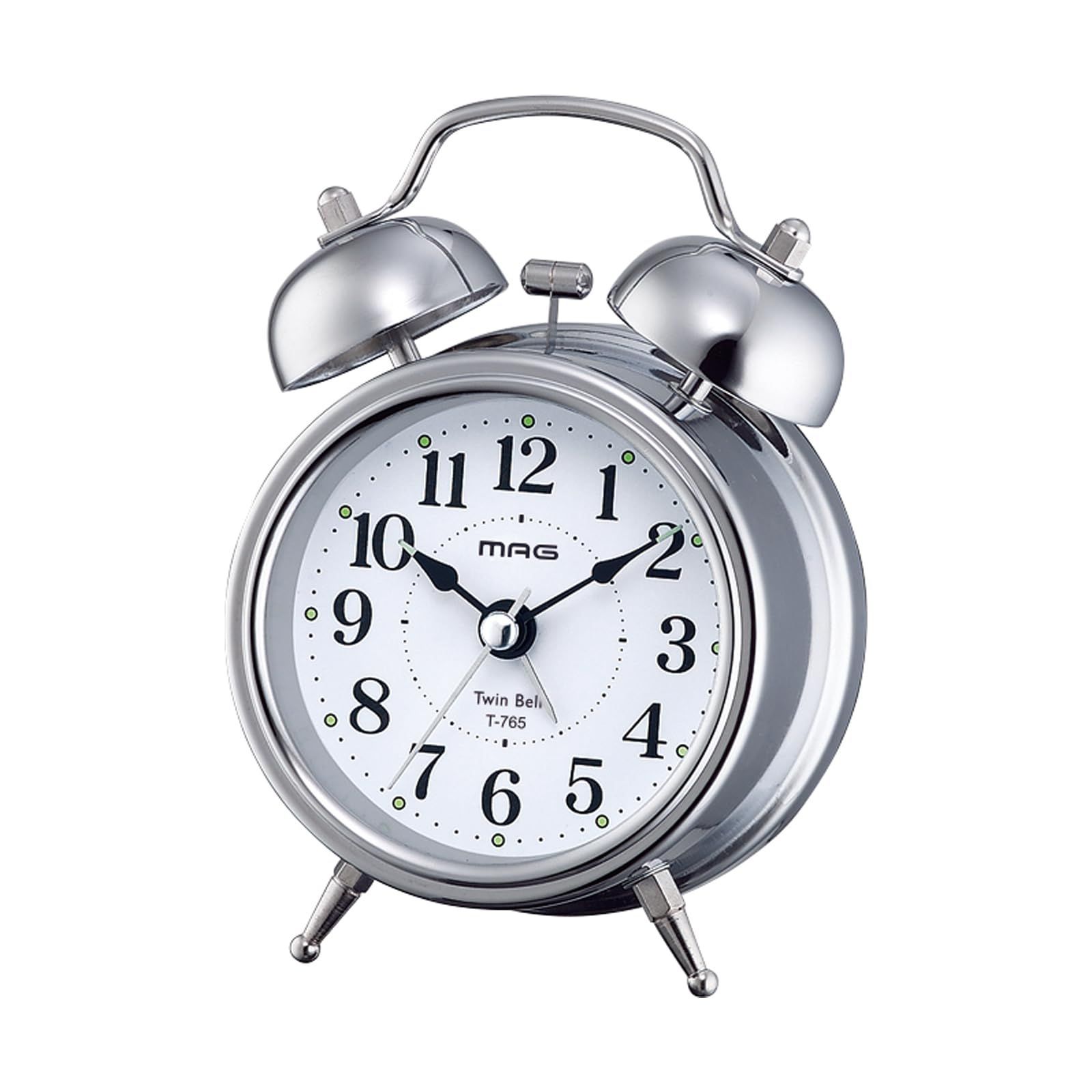 【在庫処分】MAG(マグ) 目覚まし時計 置き時計 小型 小さい かわいい ツインベル アナログ 静音 連続秒針 ベル音 アラーム スヌーズ ライト シルバー ベルズミニDX T-765 S-Z ノア精密