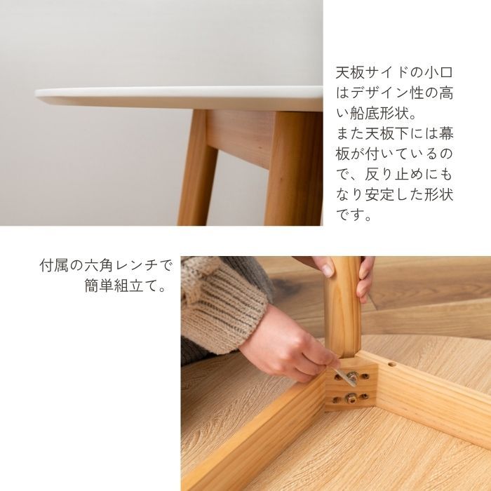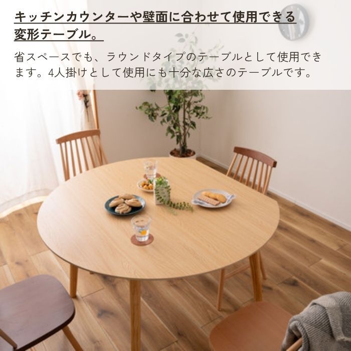 ●脚裏にはフェルトが付いているので、床への傷防止にも なり安心です。 ------------------------------------------------------ テーブル 丸 ラウンドテーブル 壁付け 模様替え 北欧 円形 変形 木製 天然木 パイン材 2人 3人 大人 おしゃれ かわいい リビング ショップ ご自宅 新生活 ひとり暮らし ナチュラル木目調 ホワイト単色 ------------------------------------------------------