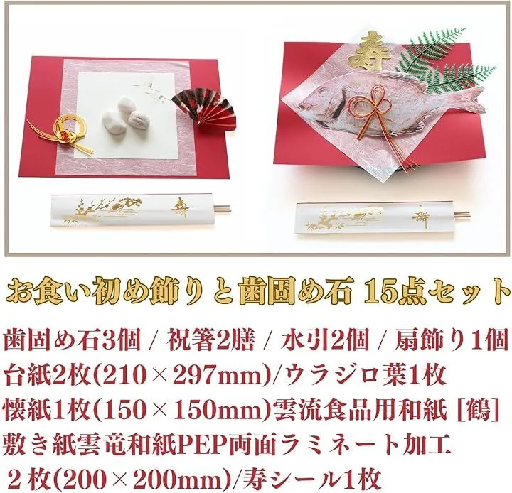 日本のショップnervousrhinos(ナーバスライノス)がおすすめするお食い初め膳お飾り歯固め石付きセット。