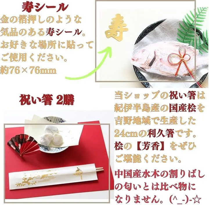 nervousrhinos お食い初め 飾り セット 鯛 歯固め石 国産杉 祝箸 100日祝い 百日祝い 敷き紙 (しろがねA4W)