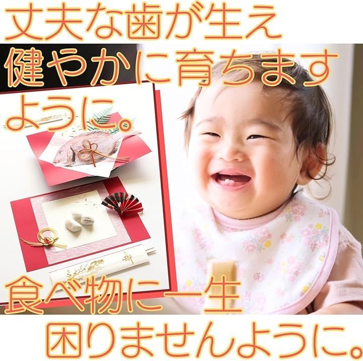 諸説ありますが、乳歯が生え始める生後100日ごろに「一生、食べものに困らないように」「丈夫な歯が育ち健やかに成長するように」という願いを込めて、赤ちゃんに食べものを食べさせる「まね」をした「箸初めの儀」がはじまりだと言われています。