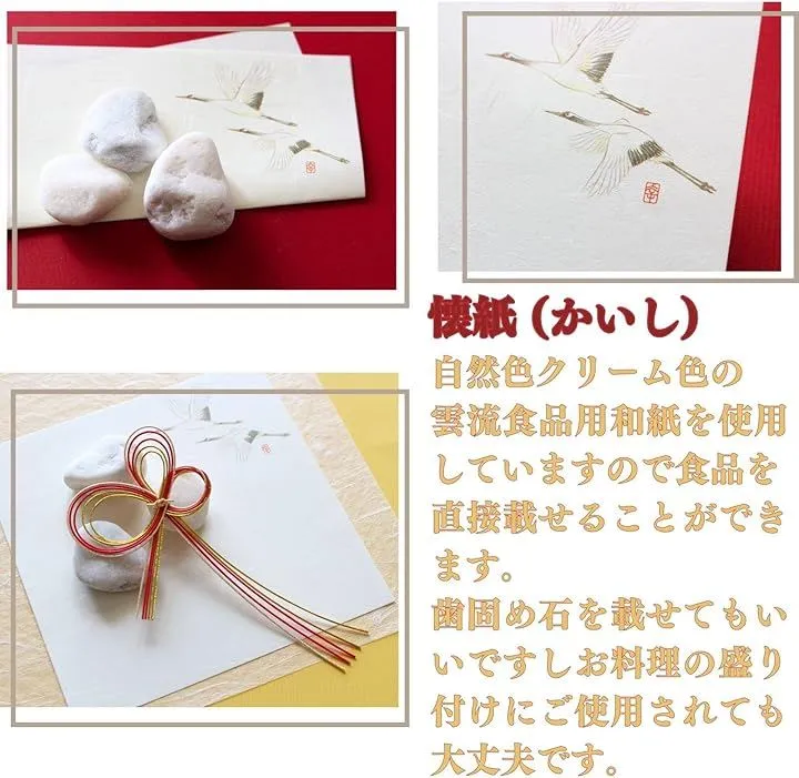 「注意点(1)」台紙となる厚紙にお食事を盛り付ける場合、台紙には食品を直接置ける加工はしておりませんので付属の懐紙や敷き紙を食品の下に敷いて台紙の上にお載せ下さい。