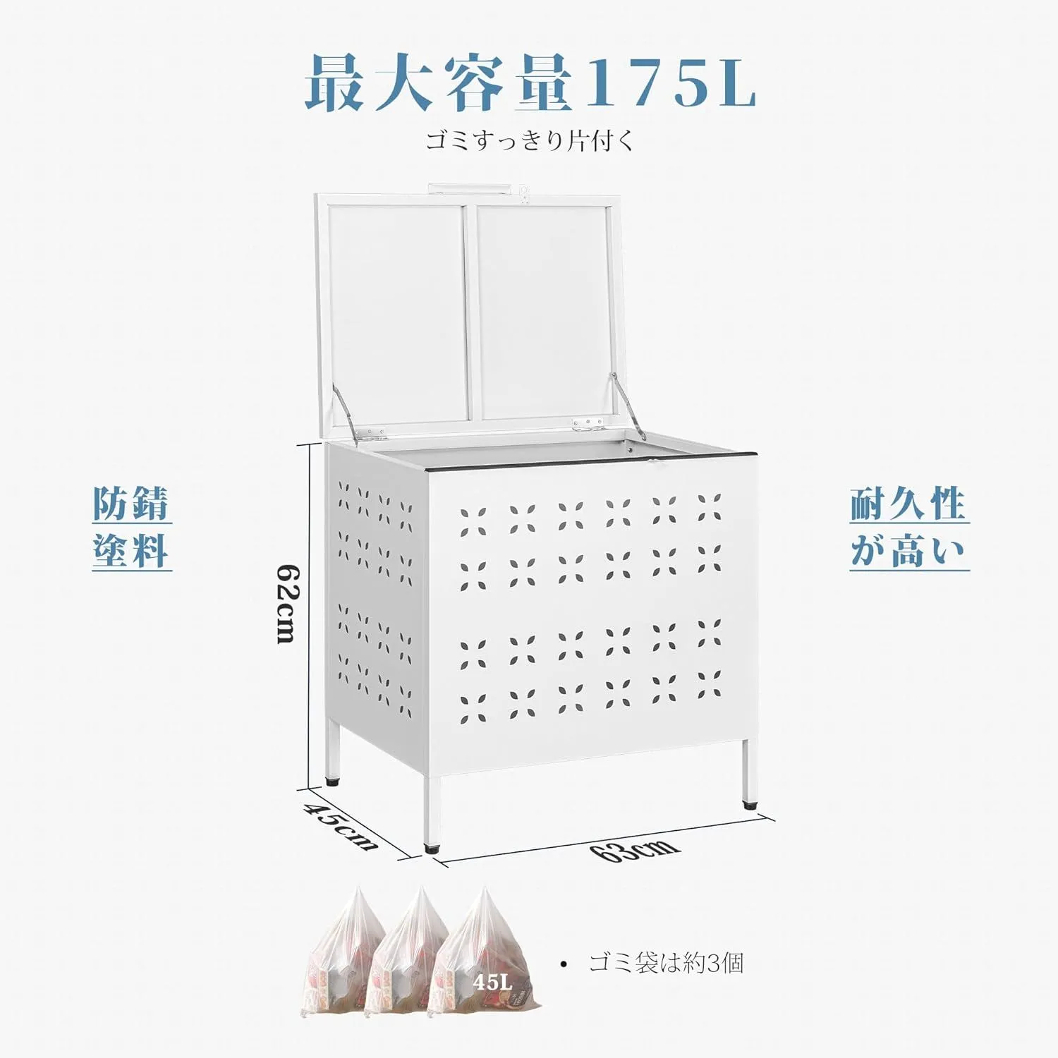 ゴミ箱 屋外 175L キッチン・庭用 大型 ゴミステーション カラスよけ 野良猫対策 ゴミ荒らし防止 分別対応 ダストボックス 家庭用 スペースを有効活用 ふた付き (クローバー丨組立式)