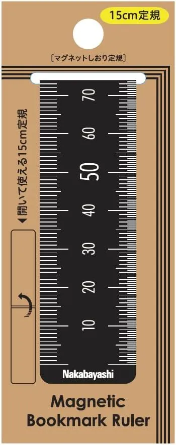 定規の機能を持ったマグネット式のしおりです。手帳や本などに挟んでブックマークとしてご使用のほか、折りたたみ部分を開いて定規としてもお使い頂けます。