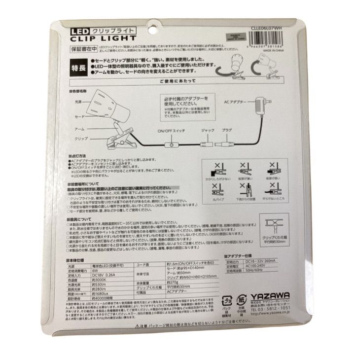 6Wクリップライト 電球色 ホワイト CLLE06L07WH ヤザワコーポレーション