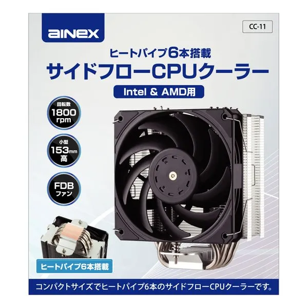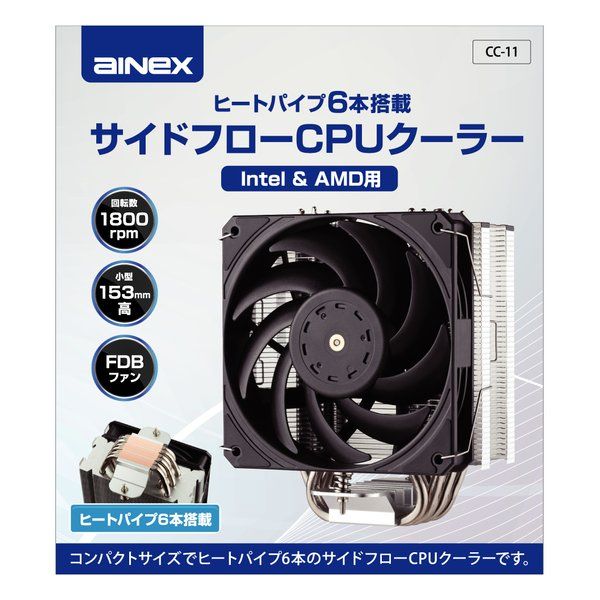 AINEX アイネックス ヒートパイプ6本搭載 Intel&AMD用 サイドフローCPUクーラー CC-11 (2679015)