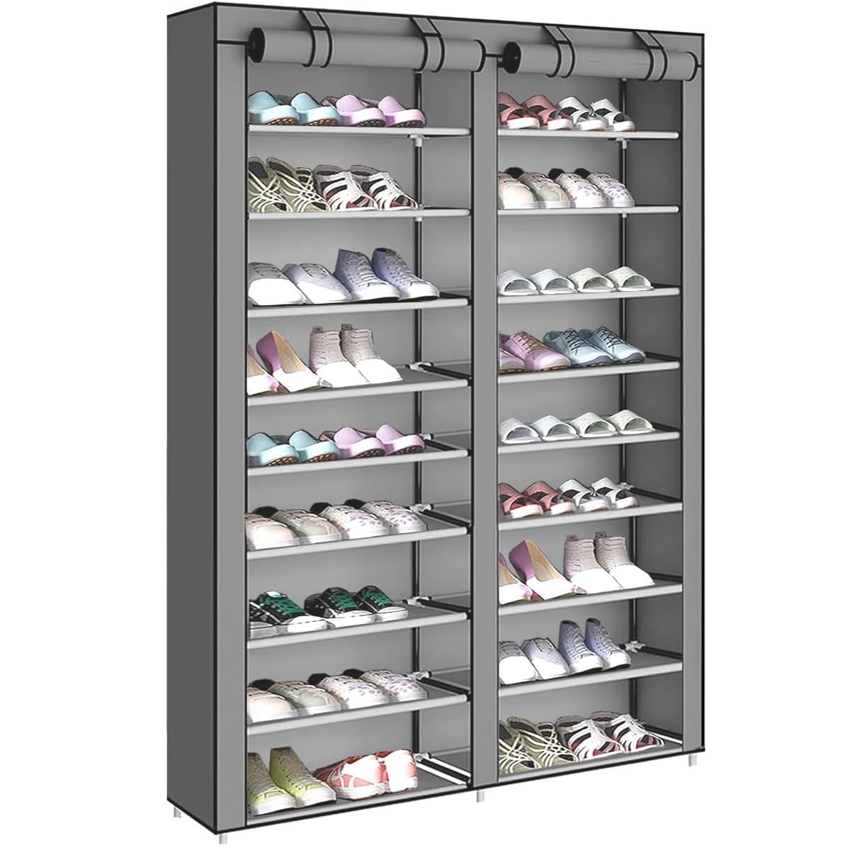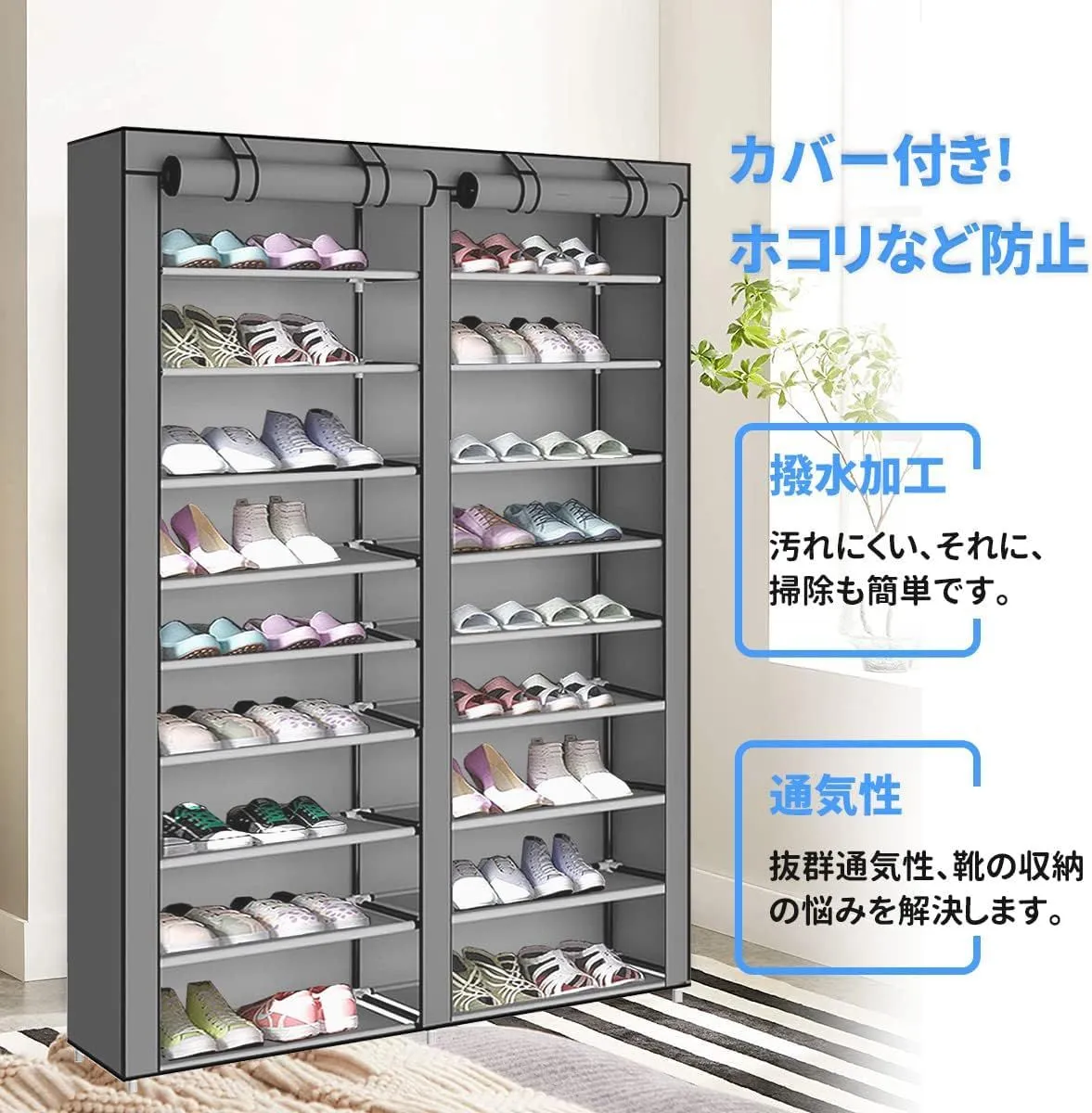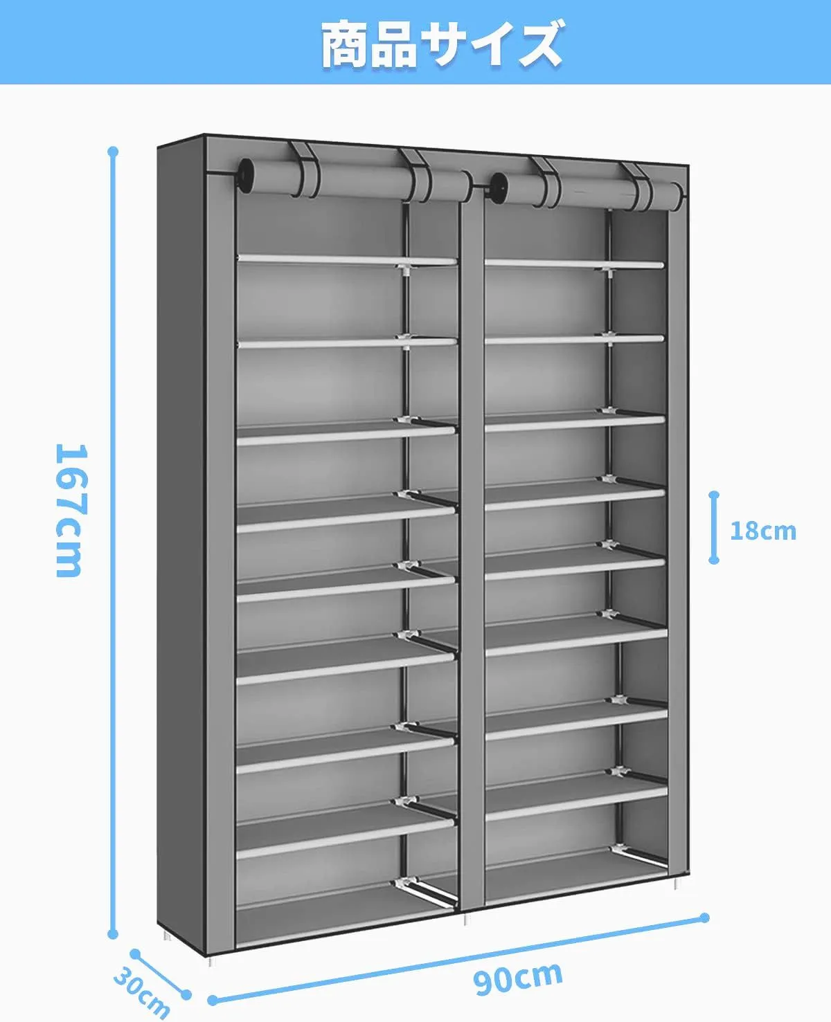 シューズラック 36足 2行 9層 組み立て式 大容量 下駄箱 スリム 玄関収納 おしゃれ 靴入れ 靴棚 不織布カバー付き 省スペース 防水 防塵 防汚 幅約90×奥行30×高さ167cm