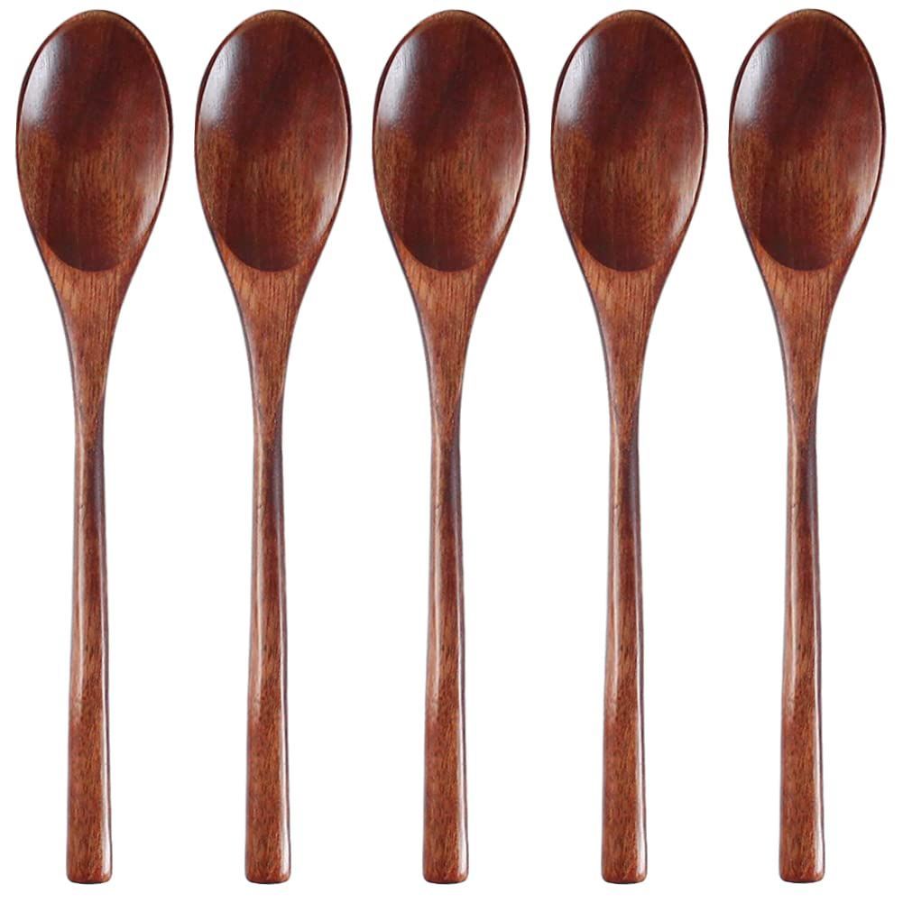 【新着商品】AOOSY スプーン 5本セット 22cm 塊木で掘り出した接着剤なし天然木製スプーン 天然漆りスプーン 弁当箱 食堂用 サラダ カレー スープ 中華料理用 チャーハン レンゲ 安全 かき氷スプーン