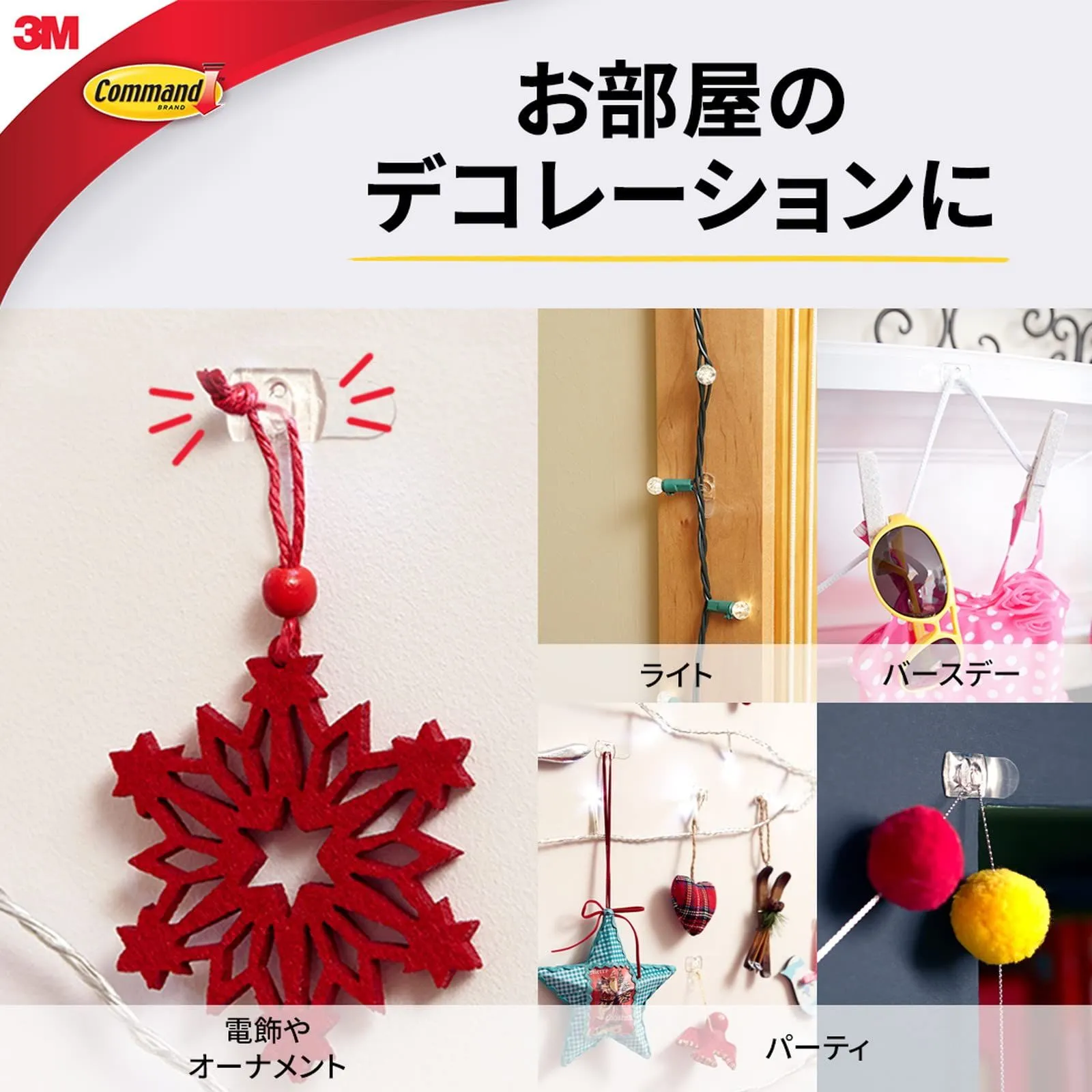 ●粘着式(はがせるタイプ) ・しっかり貼れてきれいにはがせるコマンドタブで取りつけるコード整理用製品。 ・テープも本体も透明なので、目立たずすっきりコードが整理できる。 ・引っ張って伸ばすことで跡を残さずはがせるので、安心して取り付けられる。 ・コードの種類や使い方に合わせた4種類のラインナップ。 ・電話線、アースコードなどの細いコードの配線固定に。 ※壁紙に使用する場合は、壁紙用コマンドフックをご使用下さい。 最後までご確認頂き誠にありがとうございました。 上記をご確認頂き、ご購入いただけましたら幸いです。 何かご不明な点がございましたらお気軽にメッセージからお問い合わせ下さい。