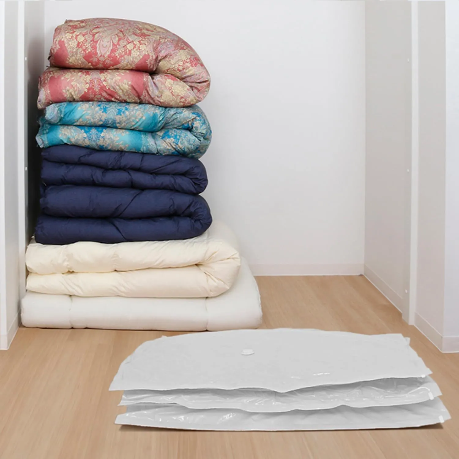 ●オフシーズンや、来客用の布団をスリムに圧縮保管。