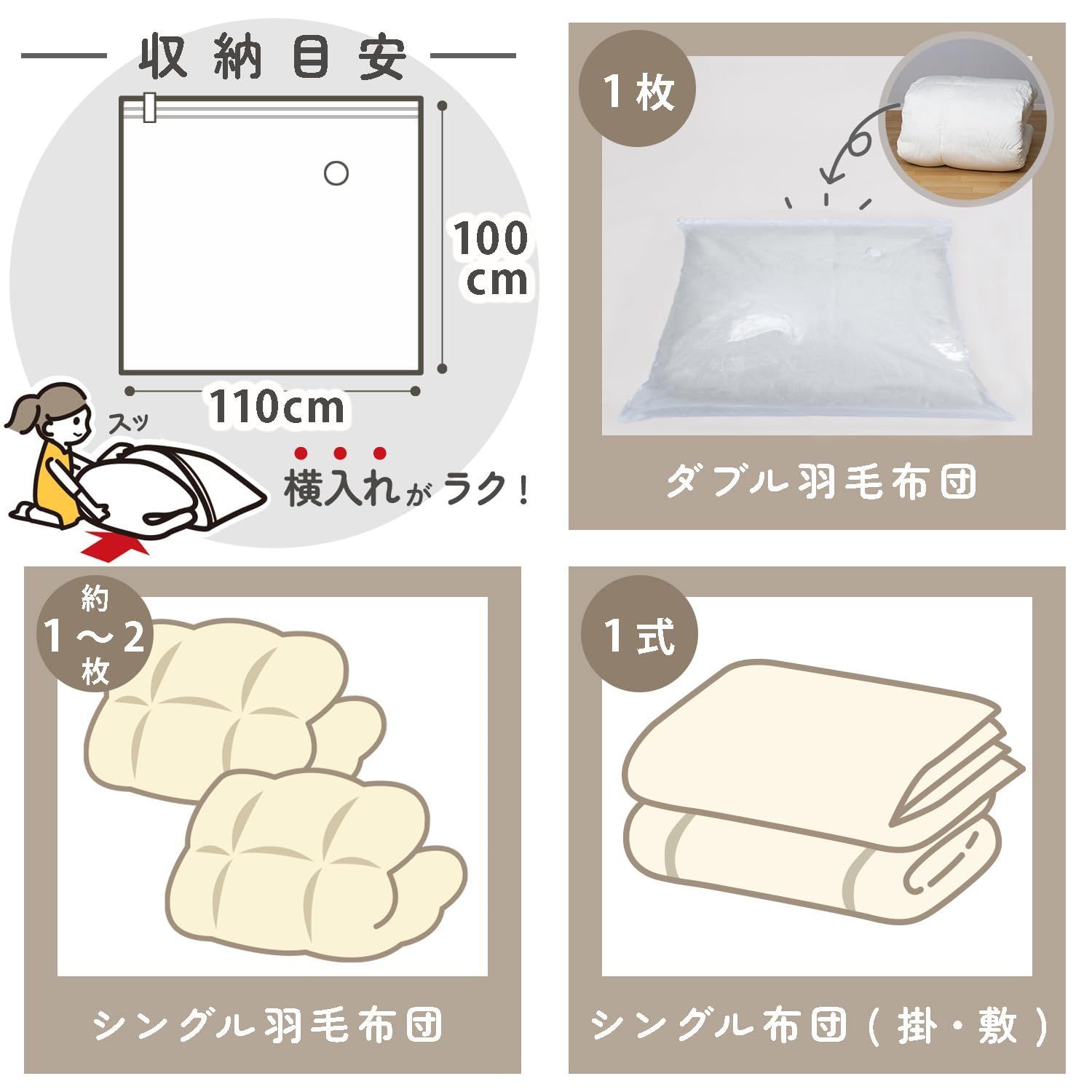 【収納目安(圧縮袋1枚あたり】