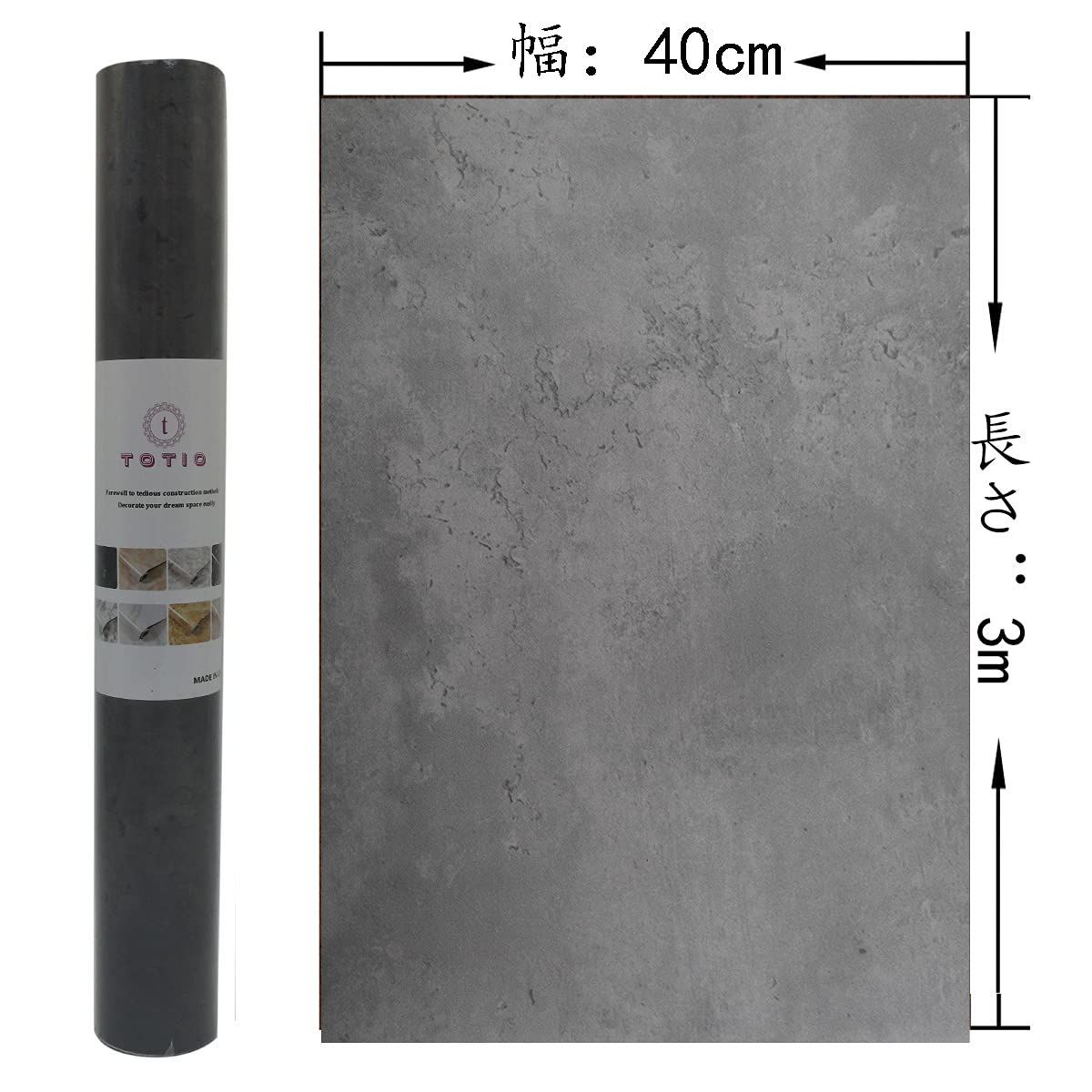 【特価商品】TOTIO 壁紙 コンクリート 打ちっぱなし カッティングシート グレー リメイクシート コンクリート風 壁紙シール はがせる おしゃれ 厚手 40CM × 3M 自粘着 防水 床シート ビニール 防油 防汚 キッチンシート 浴室 防水シール 装飾