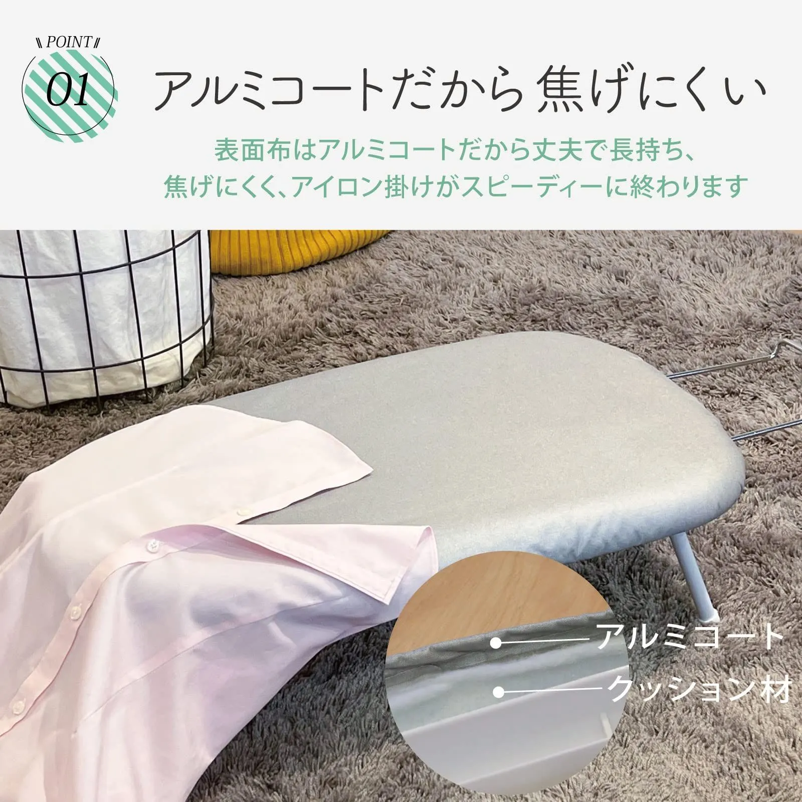 本体:ポリプロピレン、表面布:綿(アルミコート)、クッション材:ポリエステル、脚部:スチール(ポリウレタン樹脂塗装)、脚カバー:EVA・ポリエチレン樹脂、アイロン置台:スチール(クロムメッキ塗装)