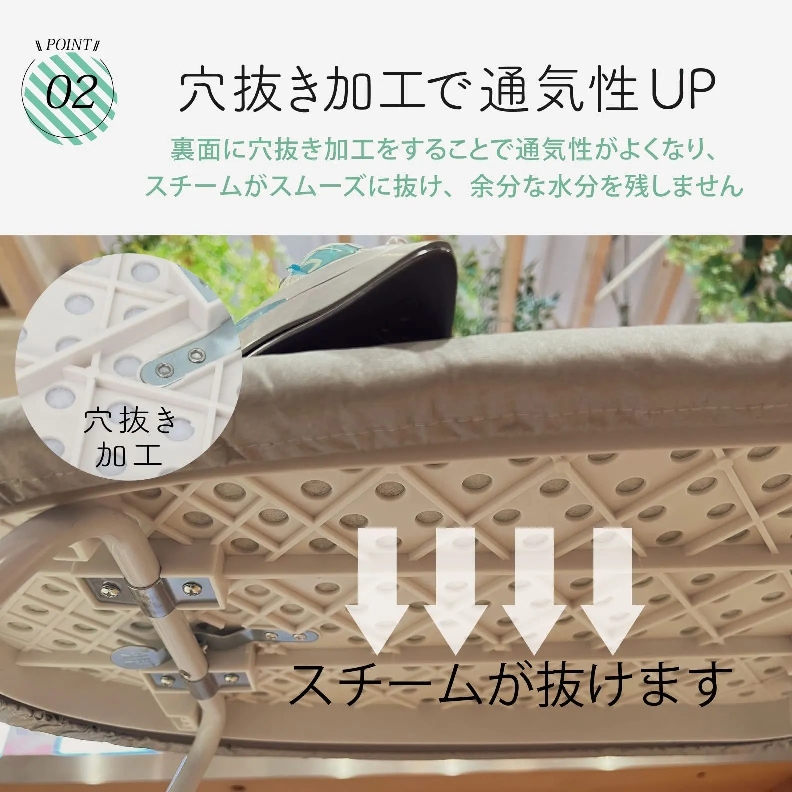 ● 穴抜き加工の特徴 裏面に穴抜き加工をすることで通気性がよくなり、スチームがスムーズに抜け、余分な水分を残しません