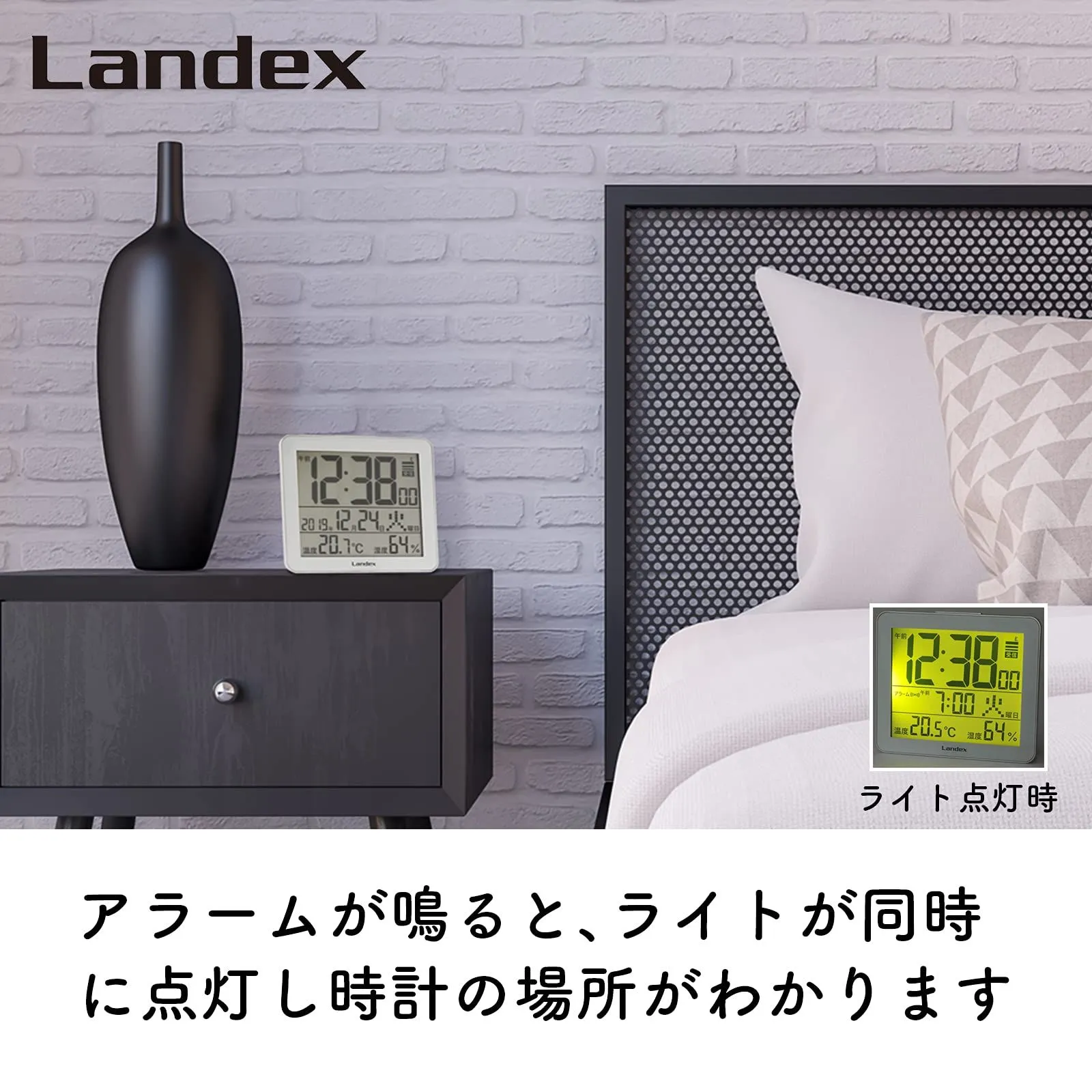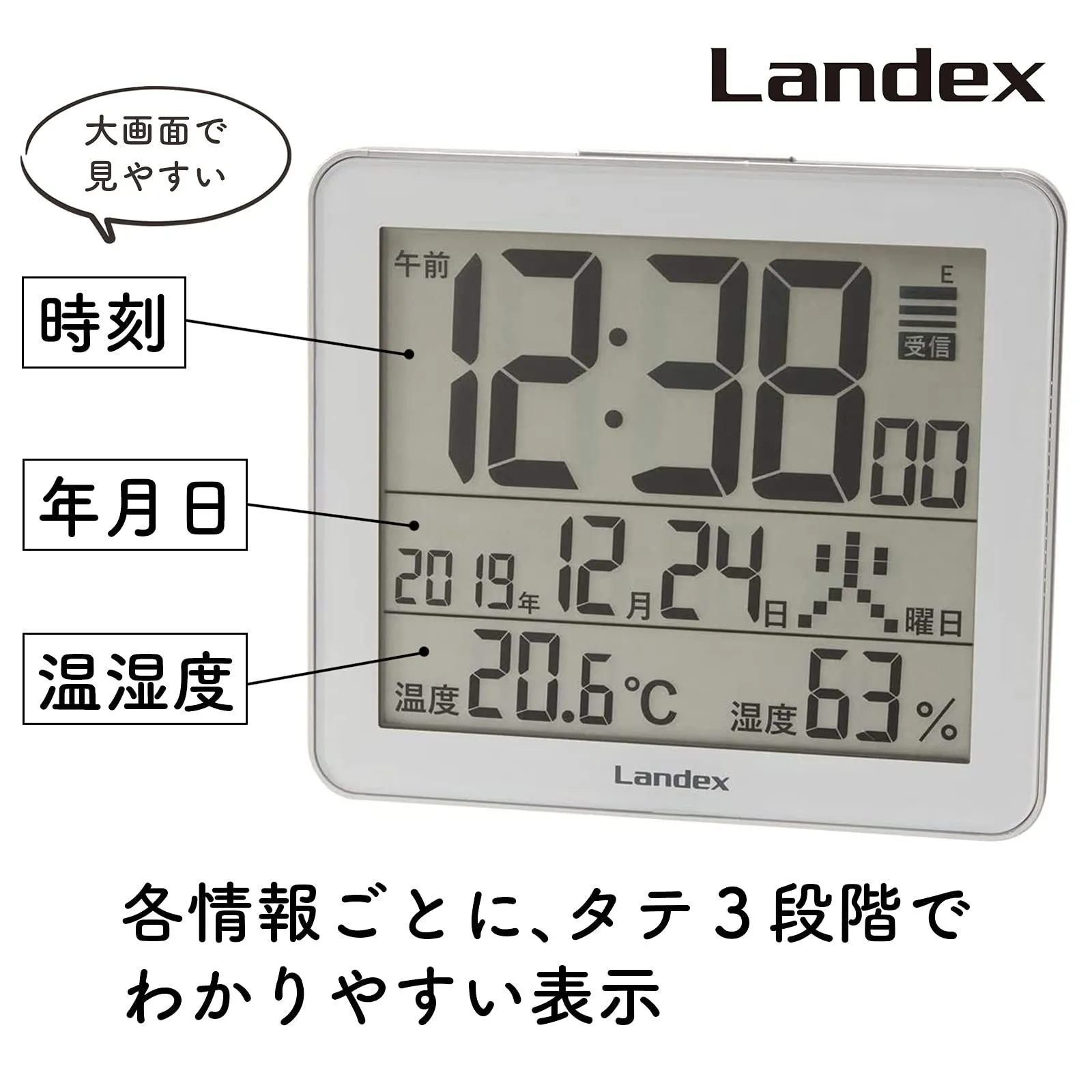 ランデックス(Landex) 置き時計 電波 デジタル スリーユニット 温度 湿度 カレンダー表示 シルバー YT5277SV1