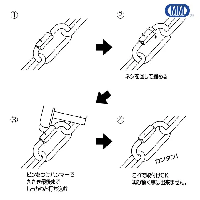 ●チェーン・ワイヤー・ロープなどの連結や、端末の金具のジョイントに。