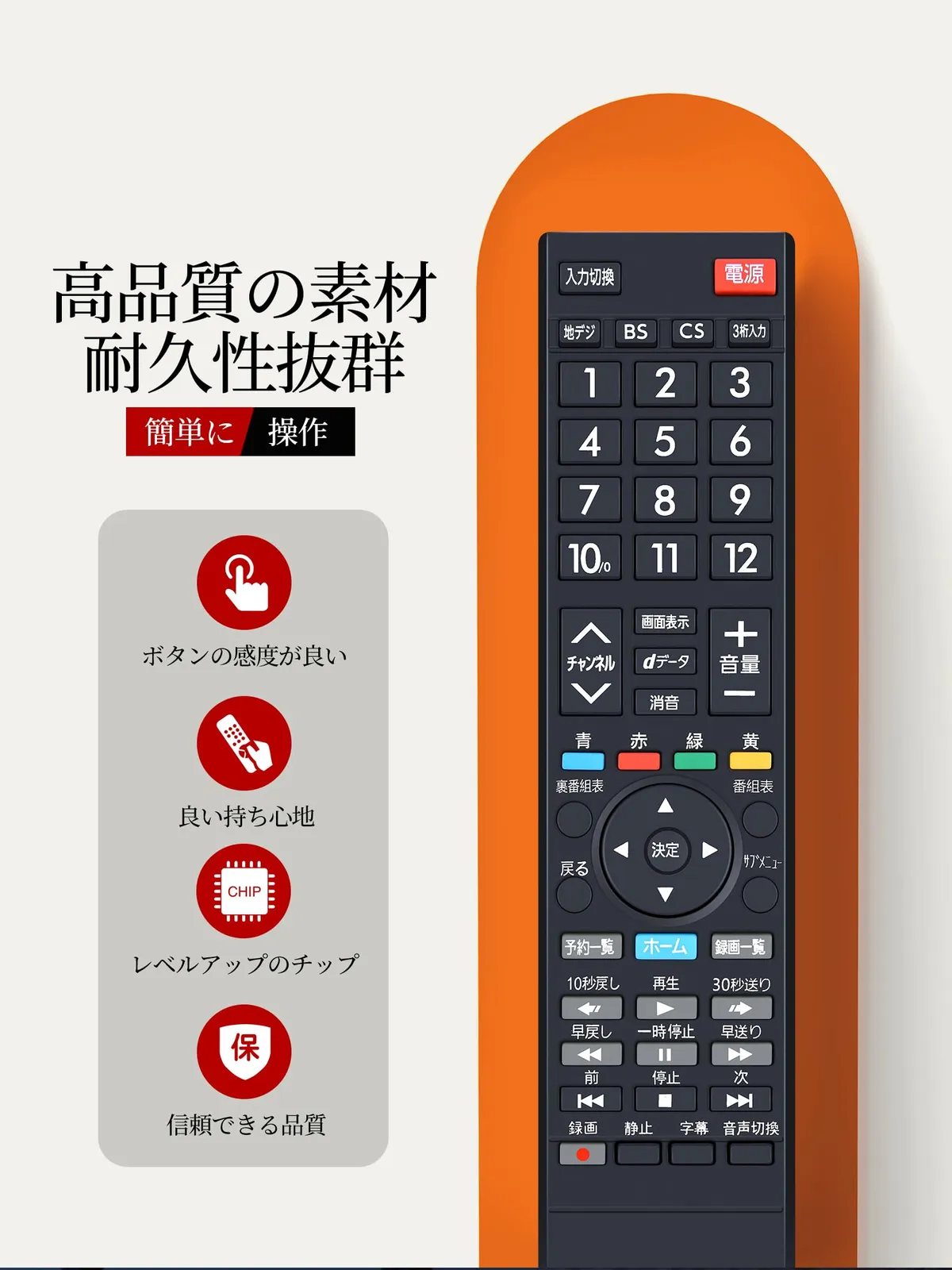 【操作しやすい】この商品はリモコン代わりですが、純正リモコンのほどんと機能が正常に動作します。パッケージには説明書がありませんので、予めご了承ください。
