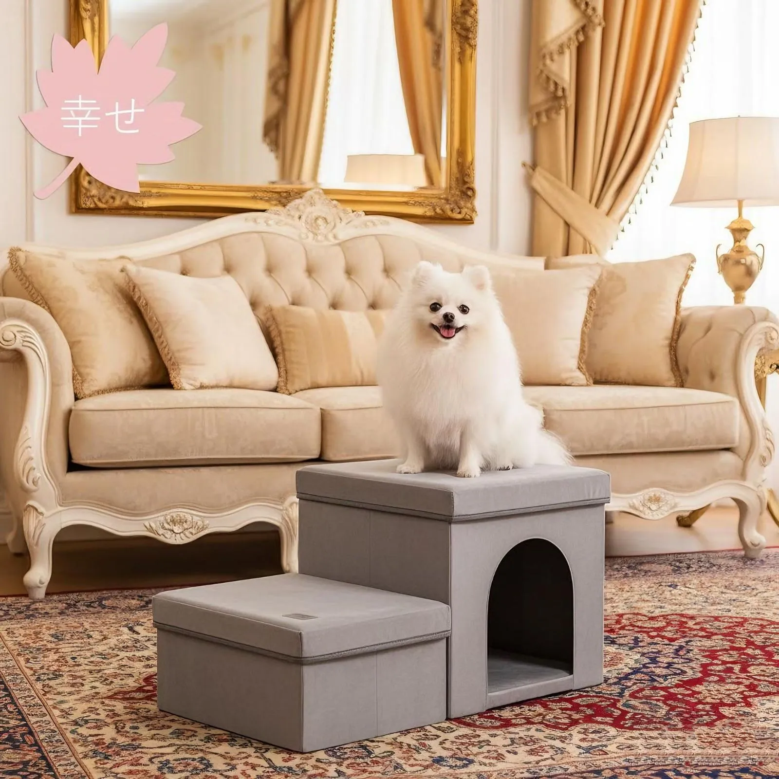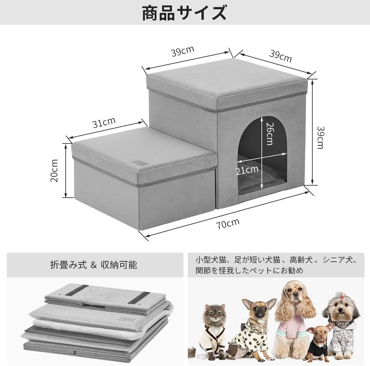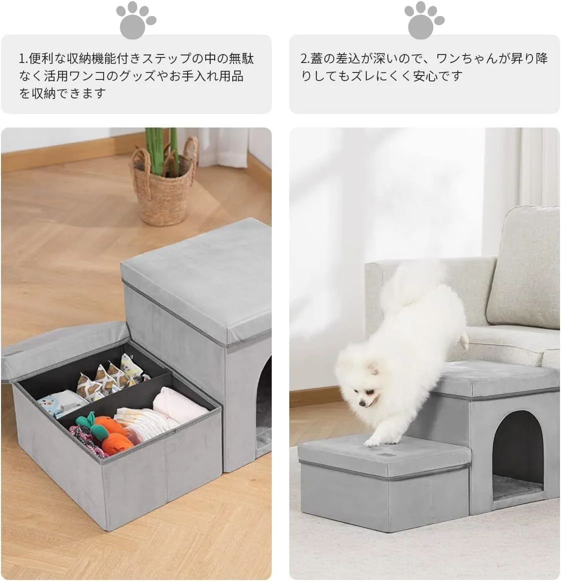 2in1ドッグステップ 猫ハウス 2段 折り畳収納型ペット用階段 高齢犬 シニア犬 スロープ 踏み台 介護用品 (灰)