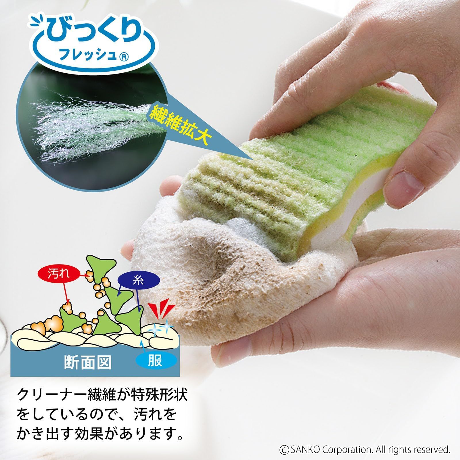 【特価セール】Sanko サンコー 洗濯用品 泥汚れ ブラシ 洗濯ブラシ ゴシゴシ洗濯クリーナー スポンジ 両面 握りやすい びっくりフレッシュ グリーン 日本製 BH-51