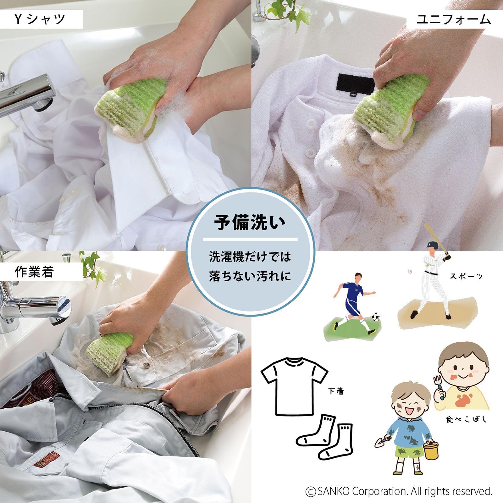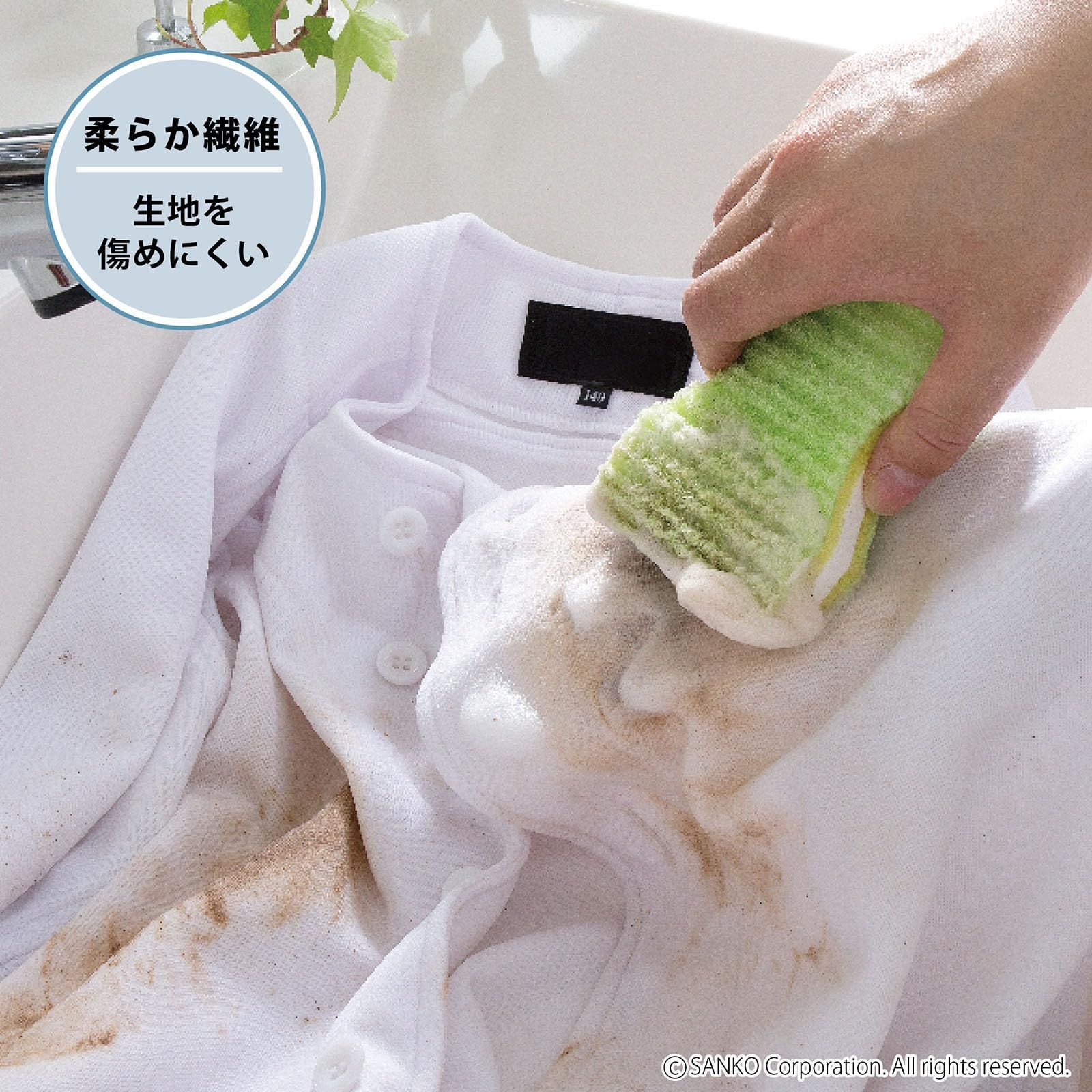 Sanko サンコー 洗濯用品 泥汚れ ブラシ 洗濯ブラシ ゴシゴシ洗濯クリーナー スポンジ 両面 握りやすい びっくりフレッシュ グリーン 日本製 BH-51