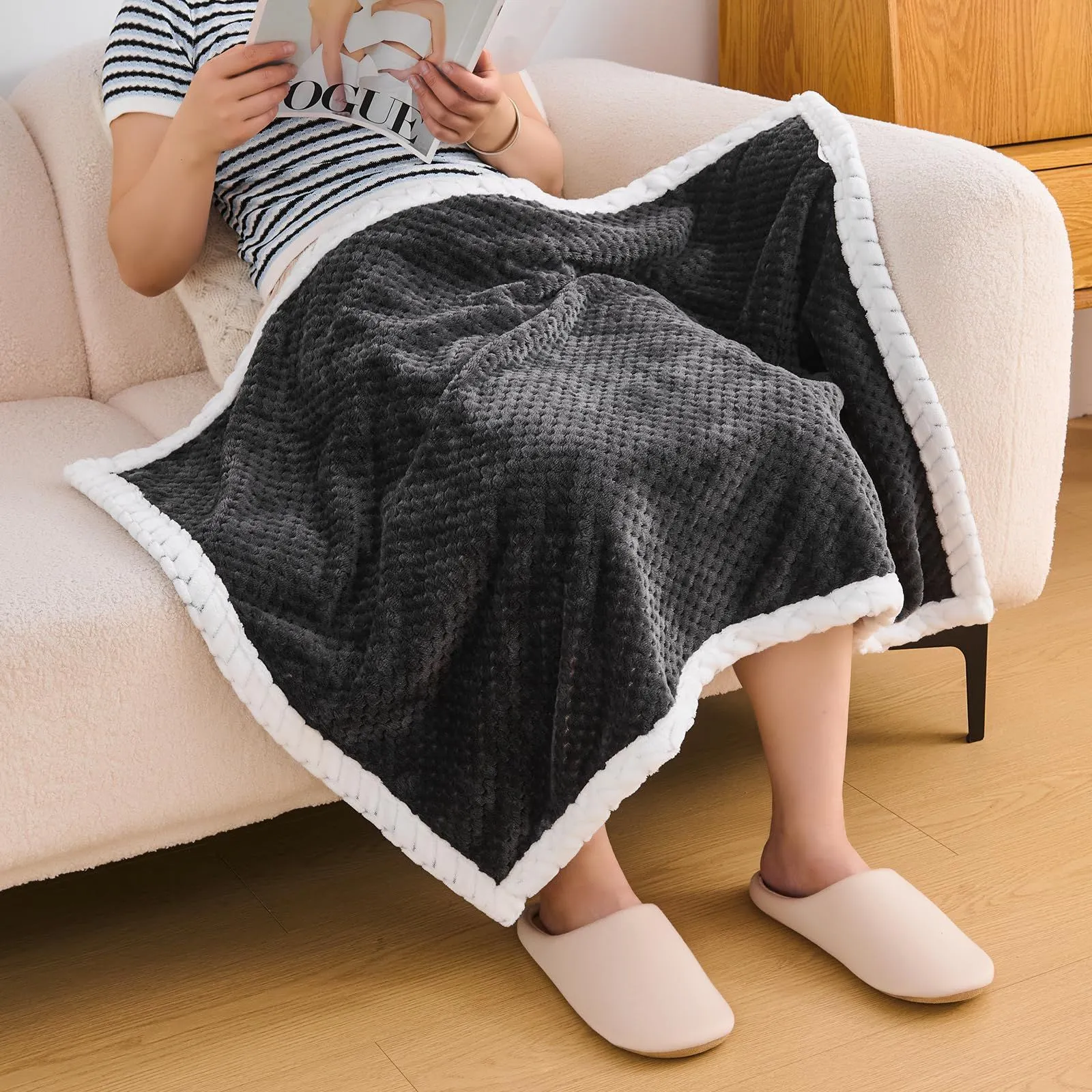 【人気商品】毛布 ひざ掛け 二枚合わせ ブランケット 暖かい 冷房 フランネル フリース 軽量 おしゃれ オールシーズン 洗える 静電防止 (70×100cm ダークグレー)