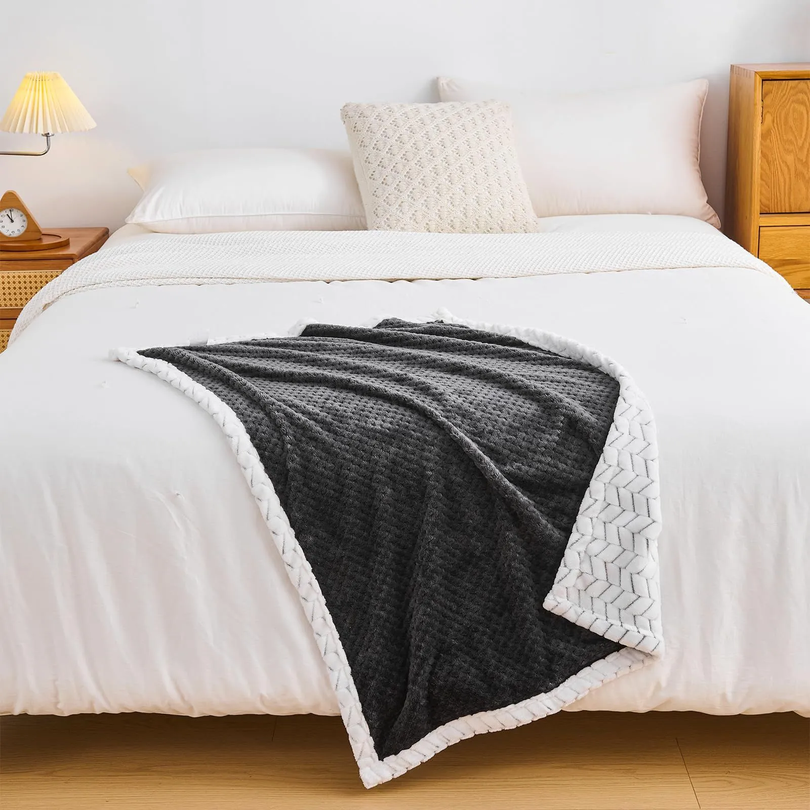 毛布 ひざ掛け 二枚合わせ ブランケット 暖かい 冷房 フランネル フリース 軽量 おしゃれ オールシーズン 洗える 静電防止 (70×100cm ダークグレー)